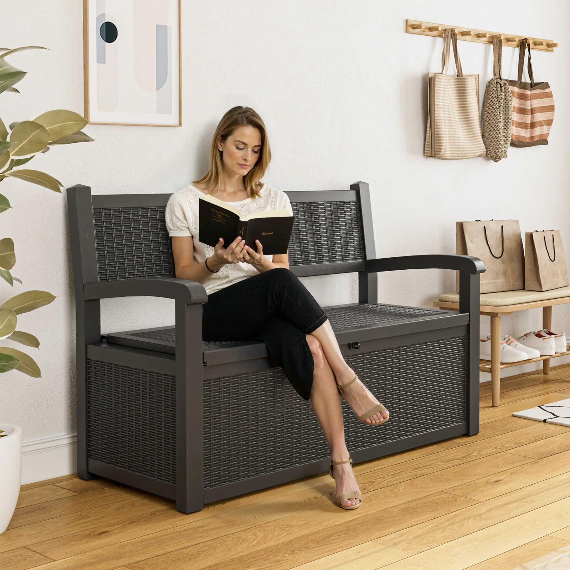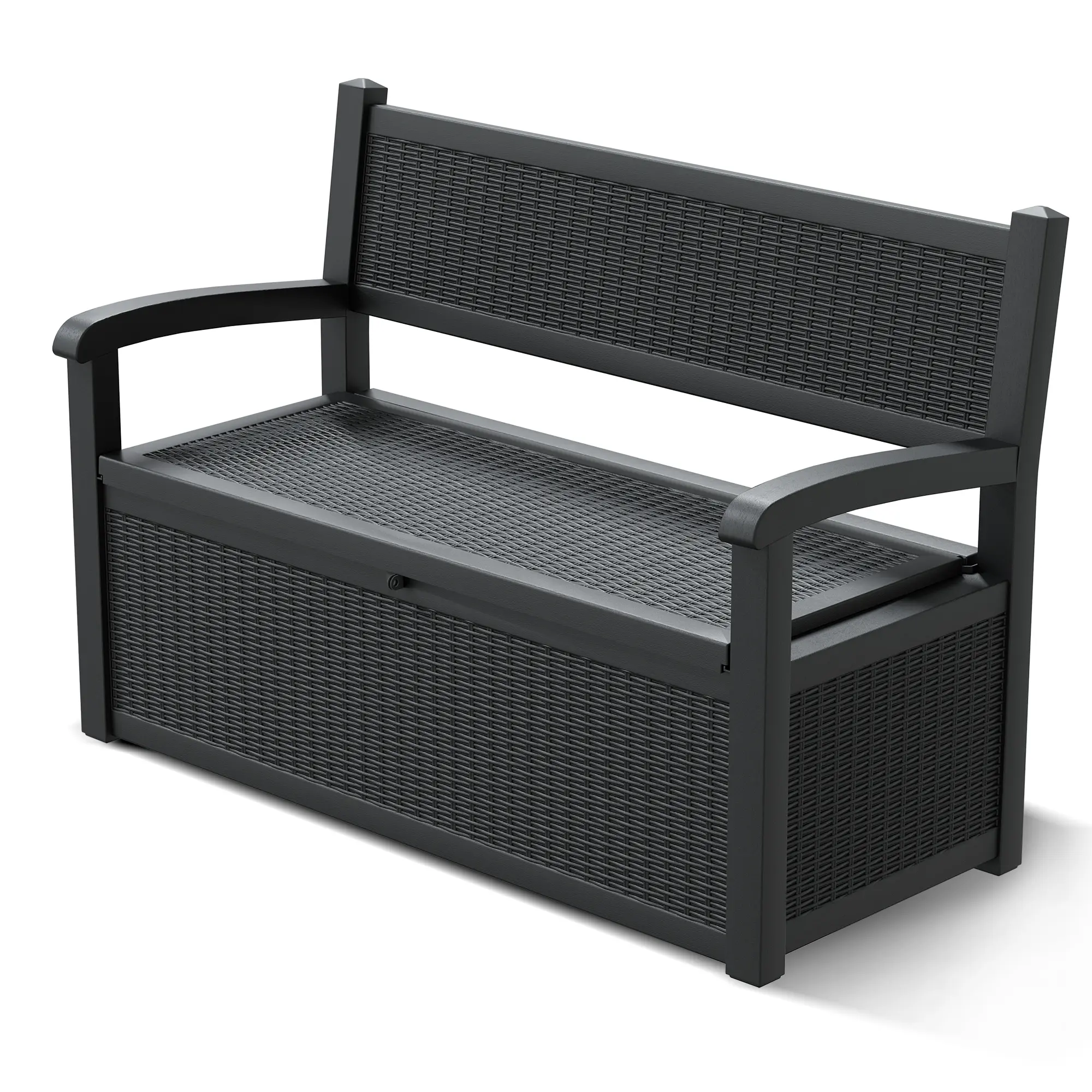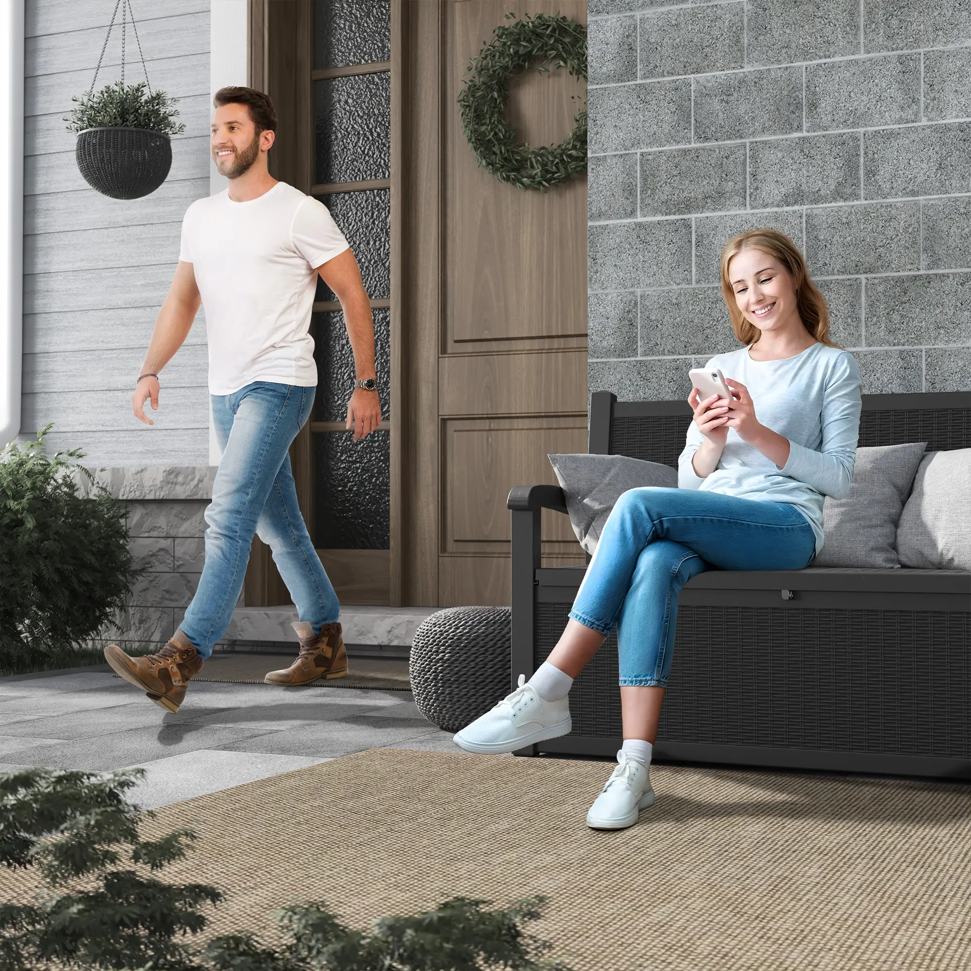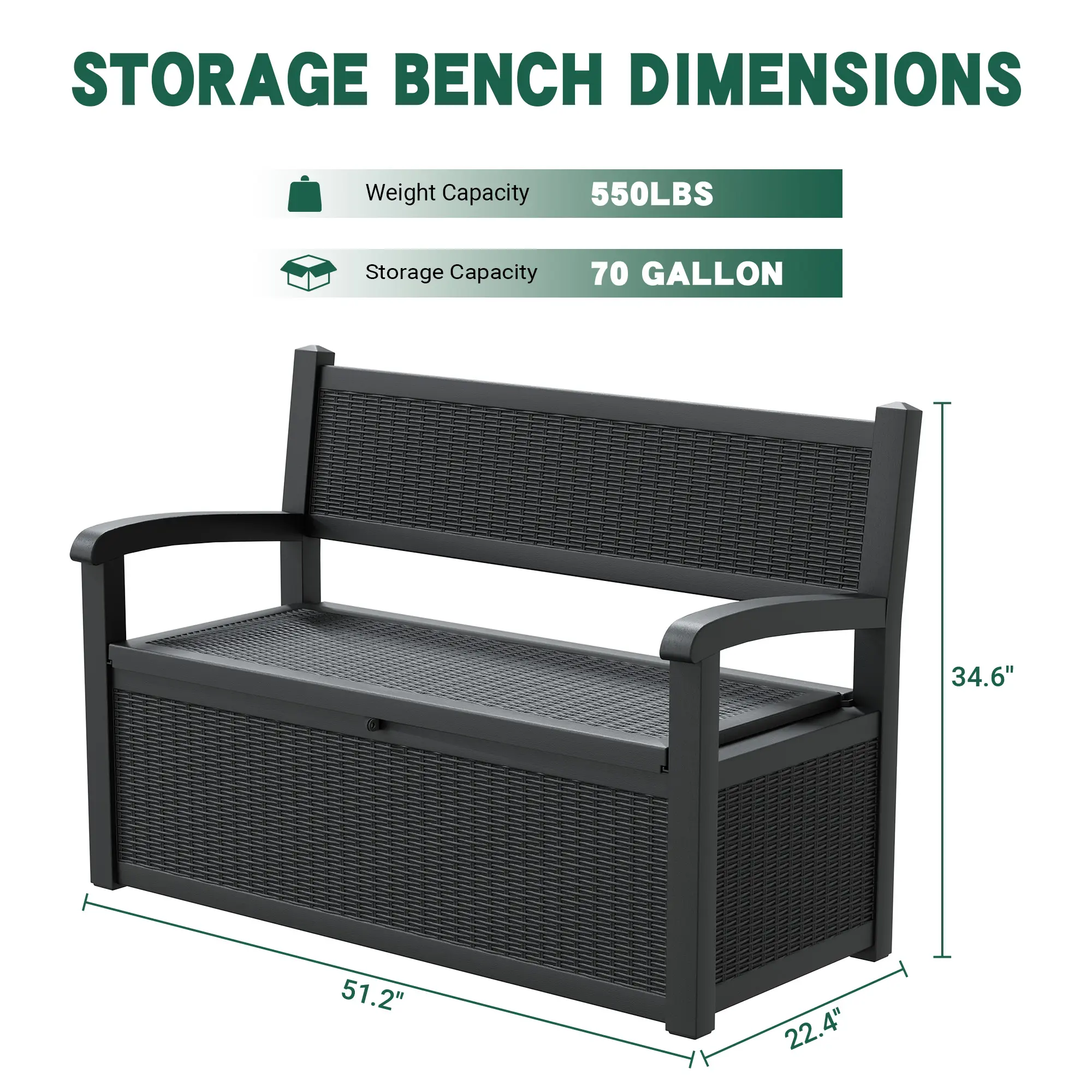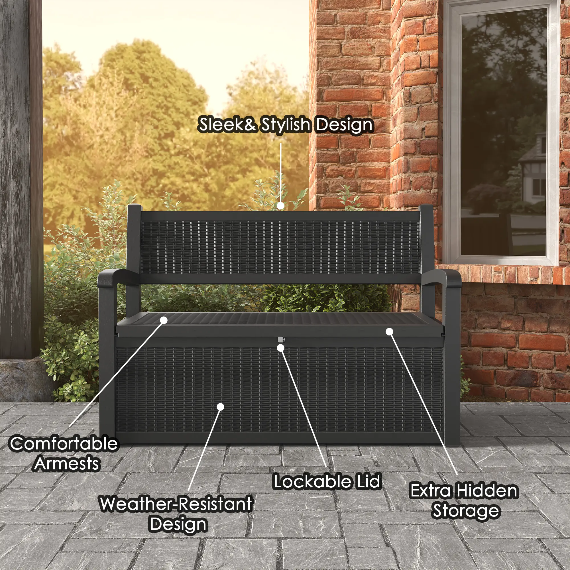 RIWENGO 70 Gallon Storage Bench Deck Box with Armrest for Patio Furniture Outdoor Storage Water Resistant Durable Secure Locking System