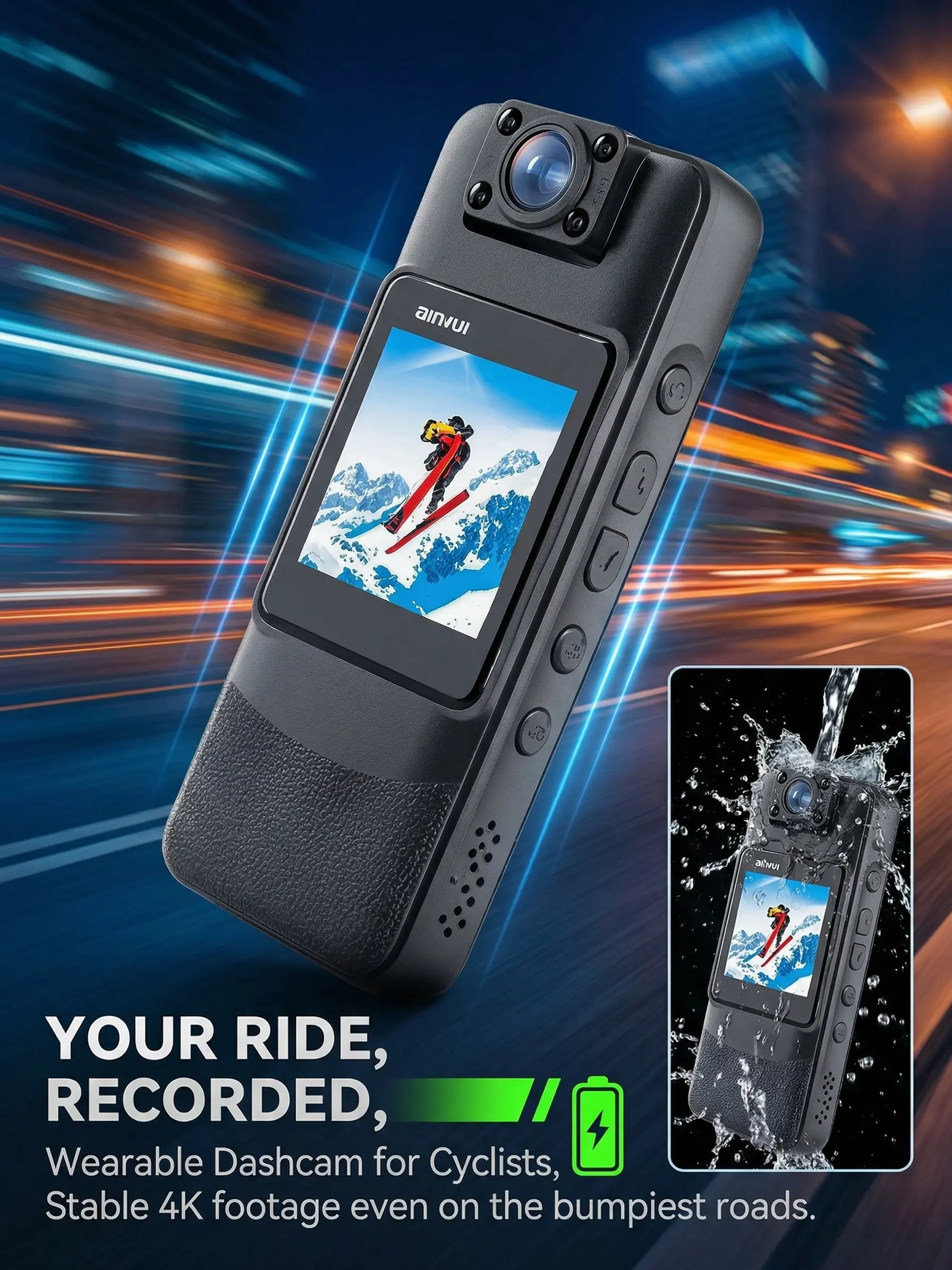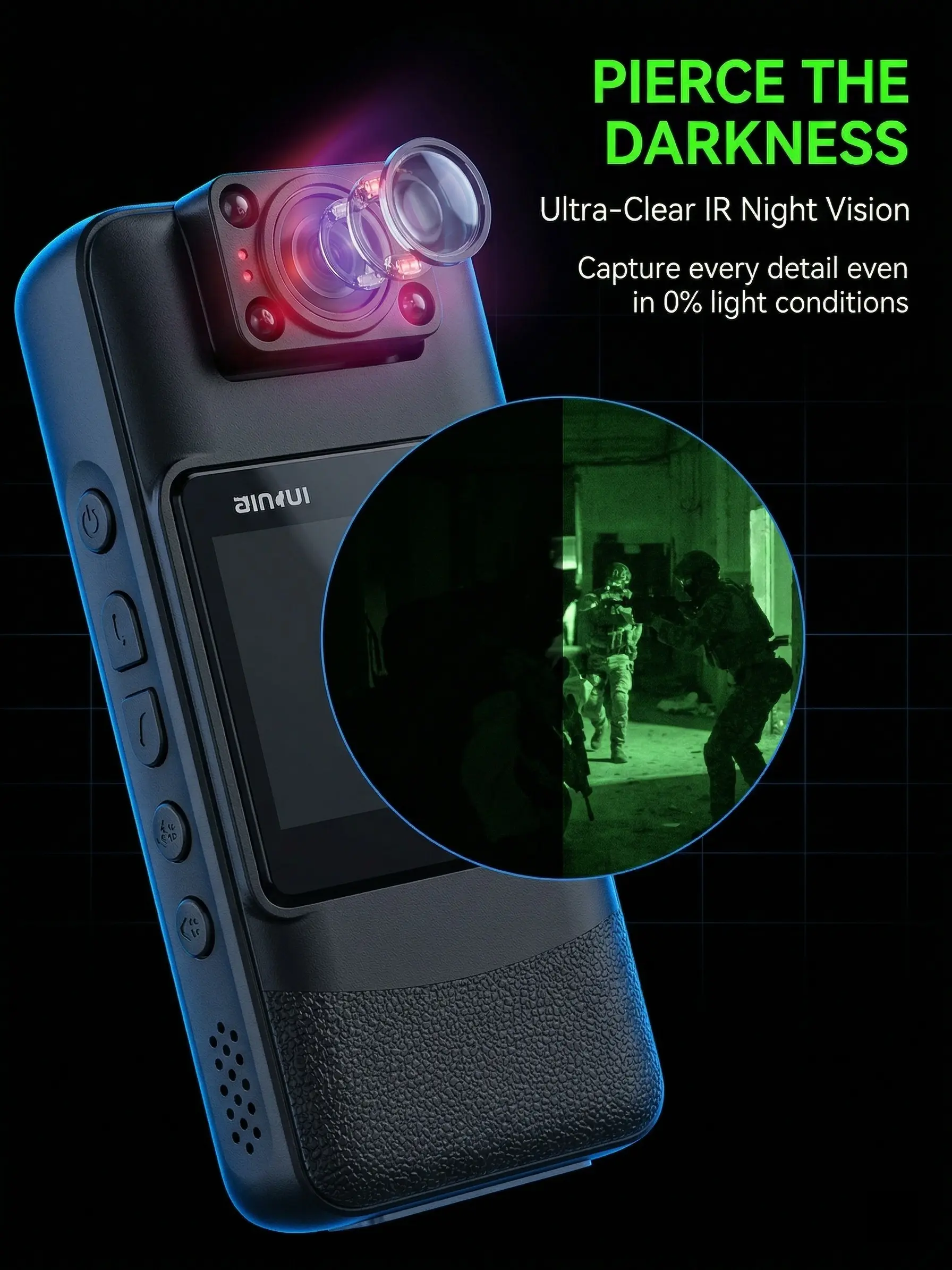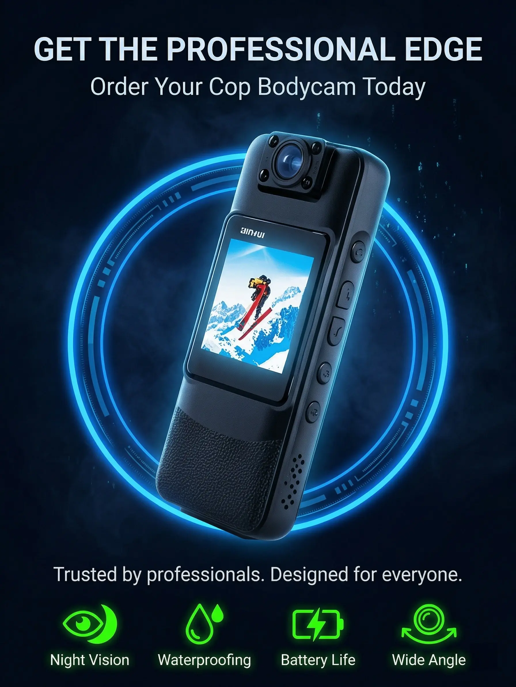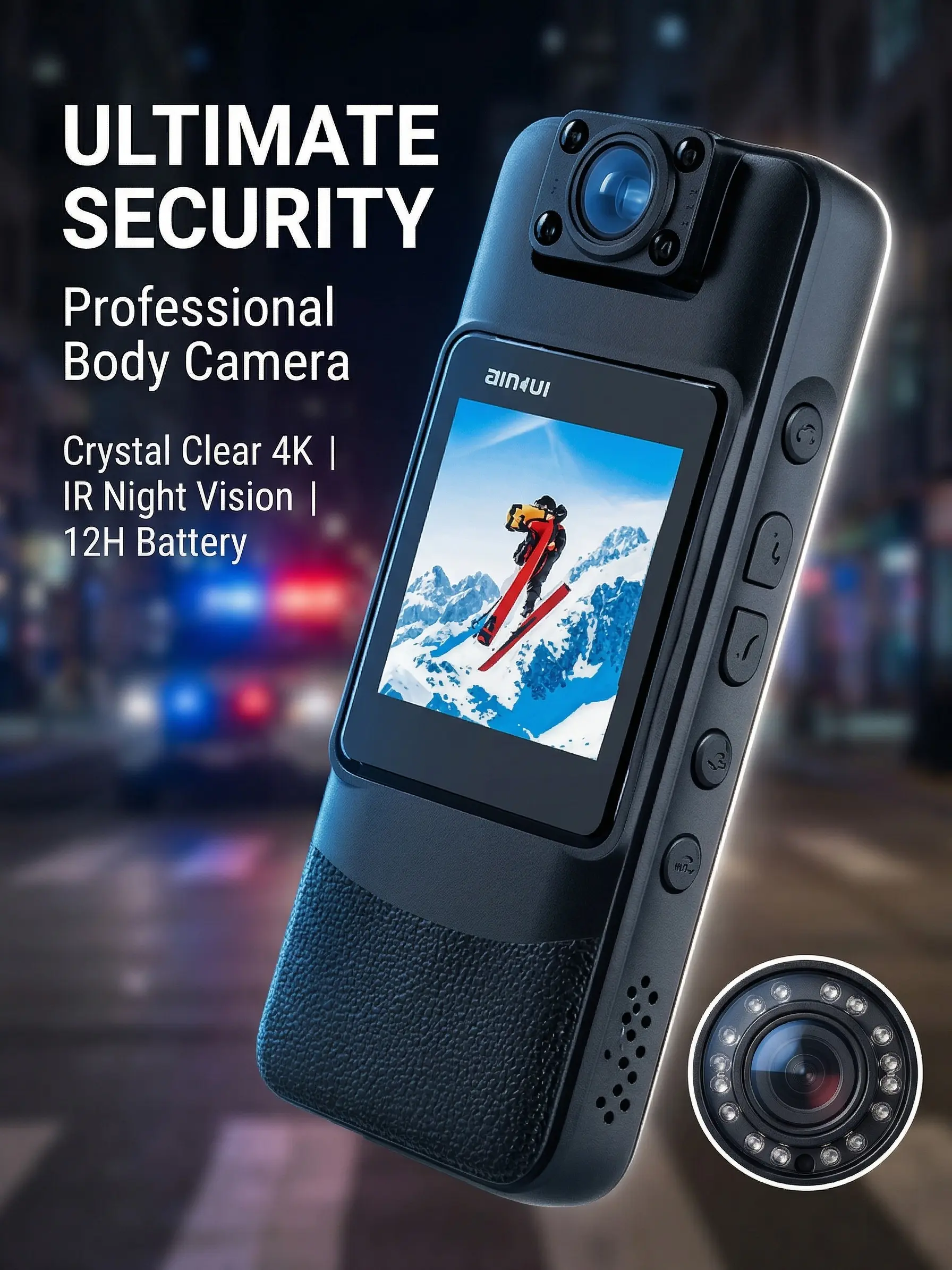 Capture every detail with the Cop Bodycam. This 1080P camera offers ultra-wide-angle coverage and night vision, ensuring you never miss a moment. Perfect for delivery drivers and riders, it provides clear footage in any lighting condition.