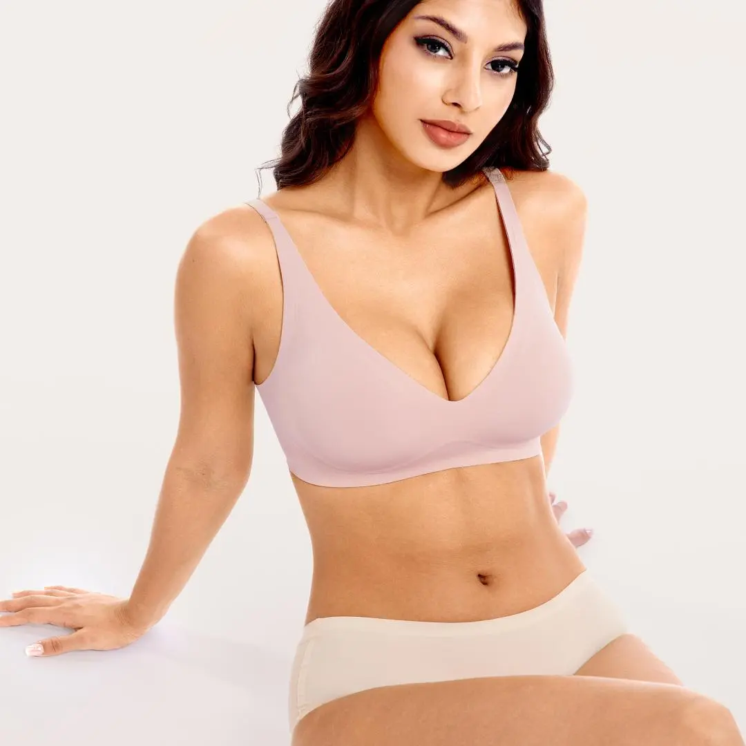 BodyTips Soft Support Deep V Wireless Bra Fit Design Lightweight Feel Natural Lift Smooth Finish Bra Popular Underwear Versatile Bra For Daily Wear Work Office Home Lounge Casual Outfit Layering Inner Wear Outer All Day Use Clean Look Flexible Structure