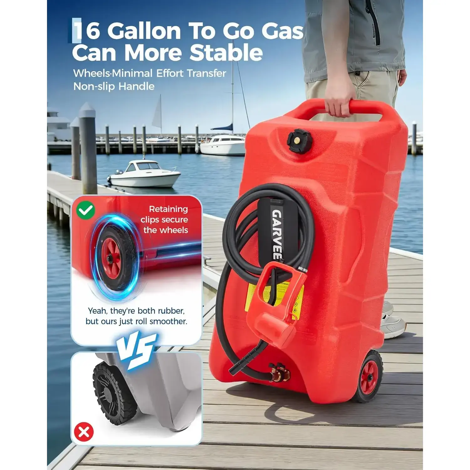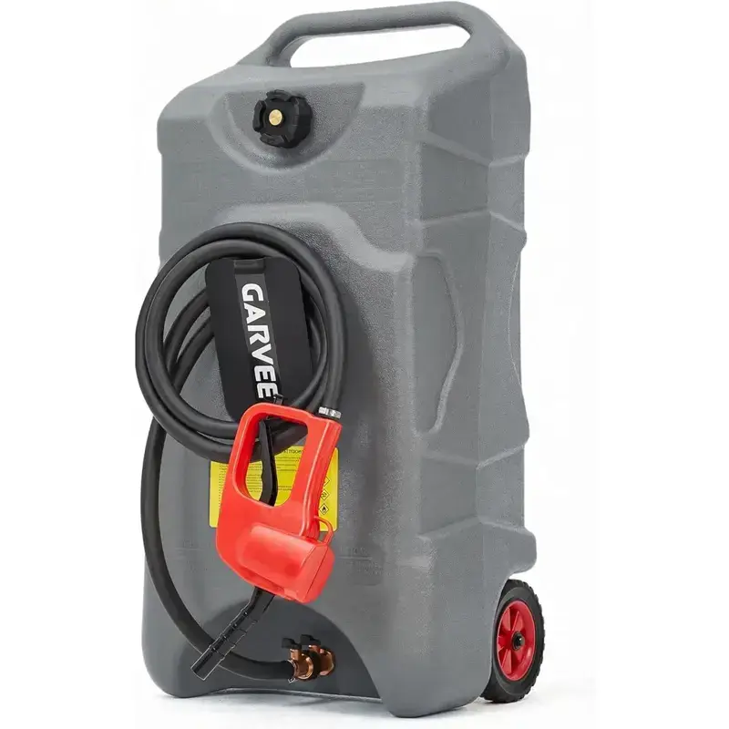 16 Gallon Gas Can, Fuel Tank Container with LE Fluid Transfer Manual 10 FT Siphon Pump, Portable Diesel Gas Storage Caddy w/Wheels for Car, ATV, Weeder, Boat, Tractor, Snow Blower,Generator