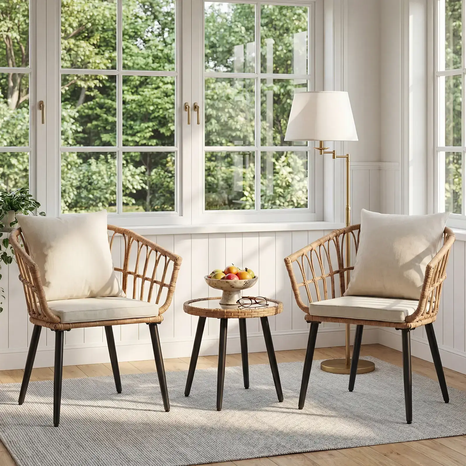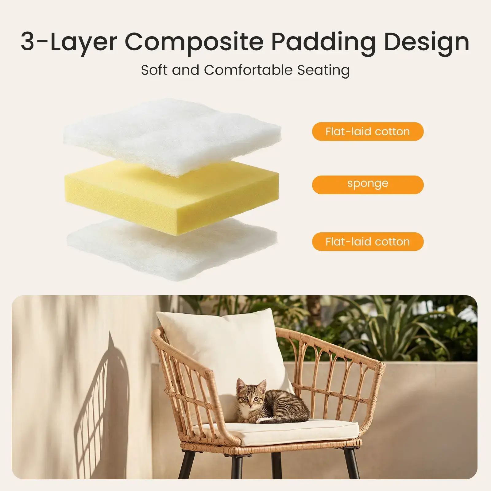 Brown Rattan + Beige Cushion