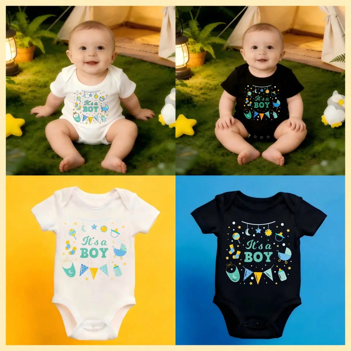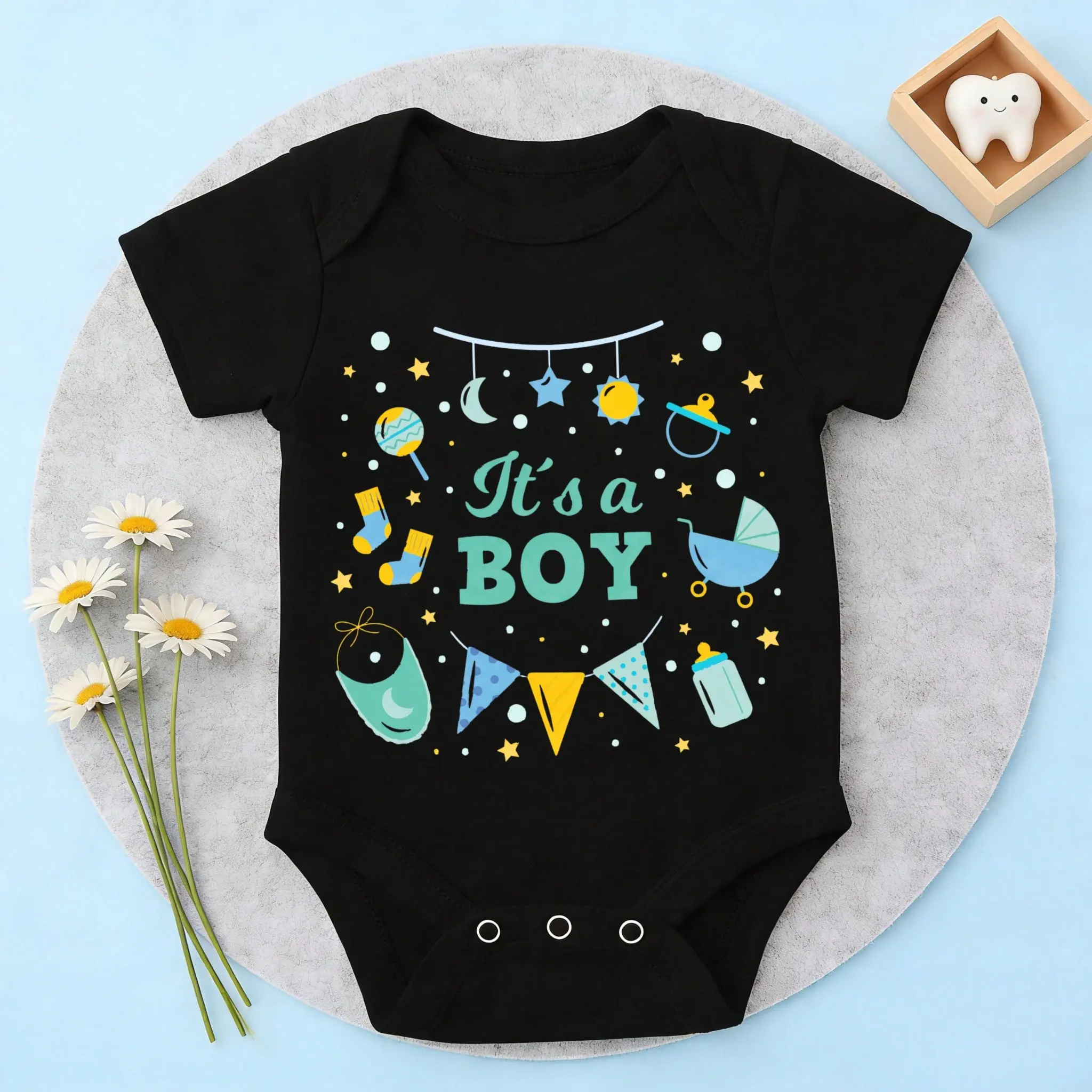 Cotton Baby Bodysuit It's A Boy Print 100% Pure Cotton Tag-Free Snap Closure Breathable Cute Print Perfect For Daily Wear