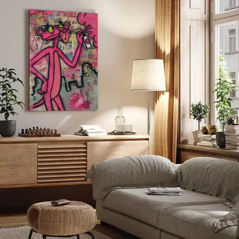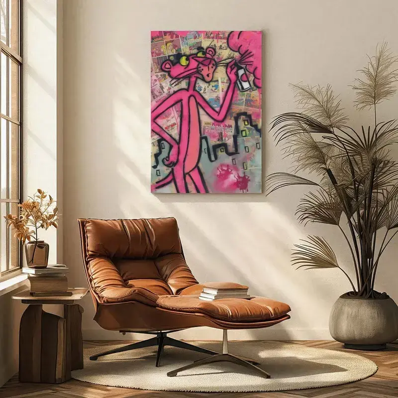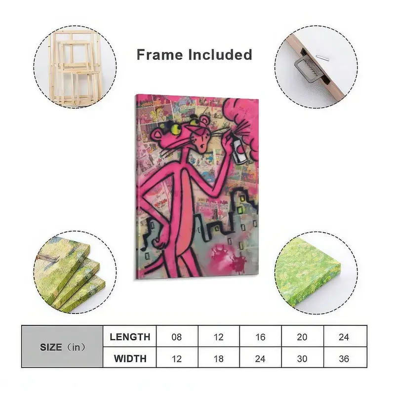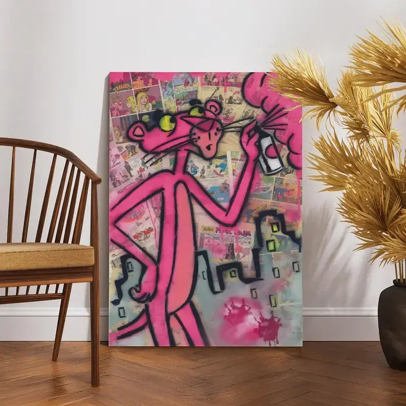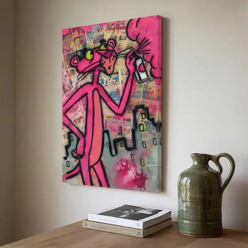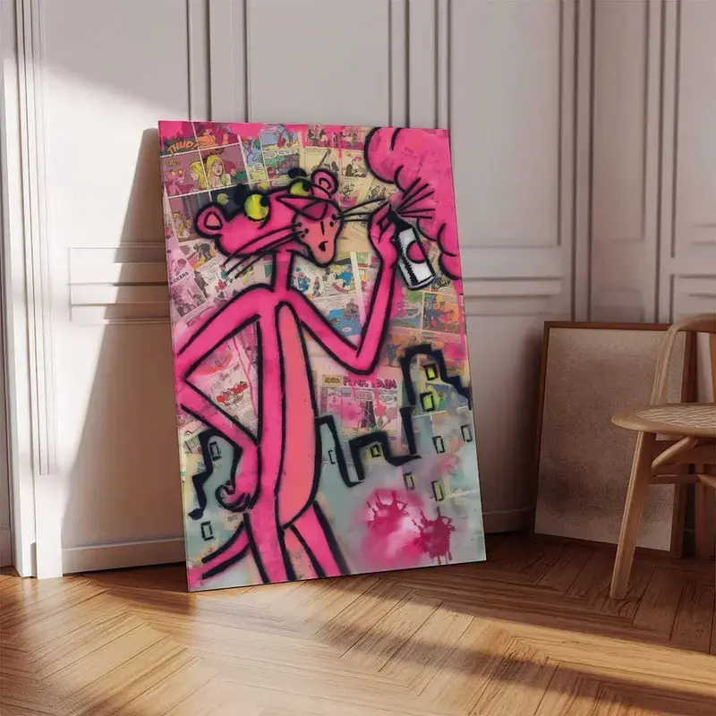 Pink Panther Poster Wall Art Canvas,Cartoon Art, Kids Room Decor, Playful Wall Decor,Waterproof Canvas Poster Print,Dopamine Decor Luxu
