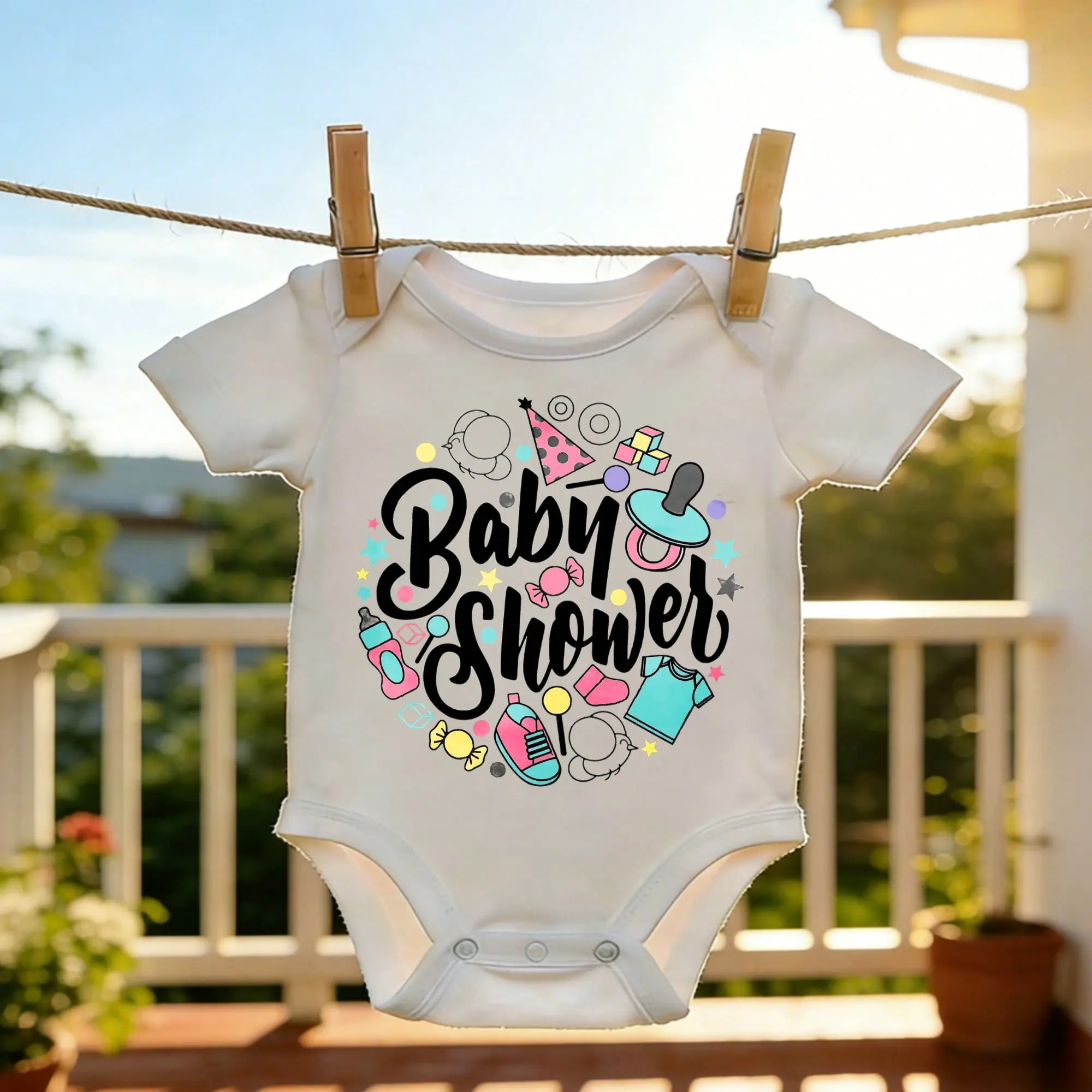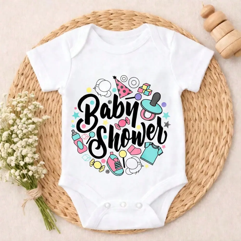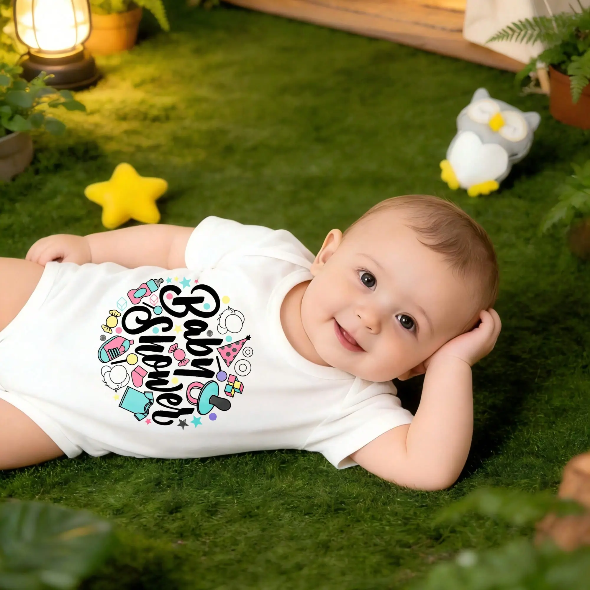 Baby Bodysuit Baby Shower Print 100% Pure Cotton Tag-Free Snap Closure Breathable Stretchy Cute Print Perfect For Gifting & Everyday