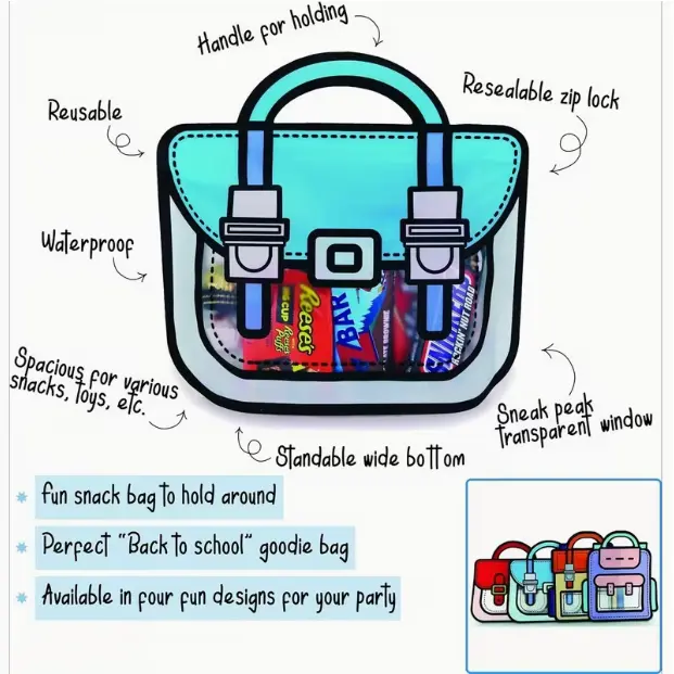 ·USES: Multipurpose design great for gift bags, party favors bags, snack or treat bags, and sandwich bags for lunch. Or use them for your child's home accessories like pens and pencils, coloring markers, crayons, etc!