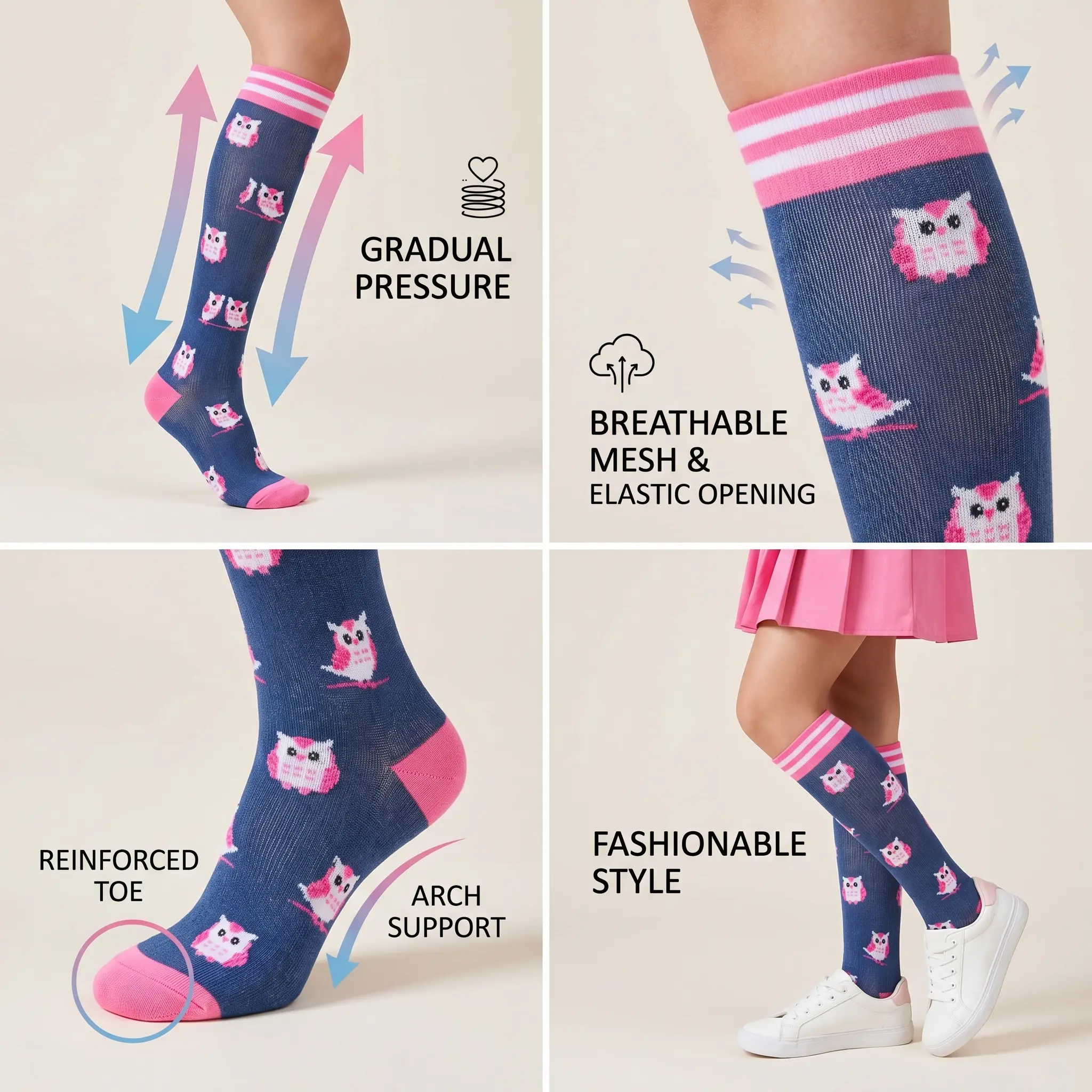 ·Stylish, modern designs: Unlike plain, utilitarian compression socks, our patterns and colors are made to match your daily outfits — for work, workouts, or casual wear — so you can stay stylish, feel confident, and add a pop of joy to your look.