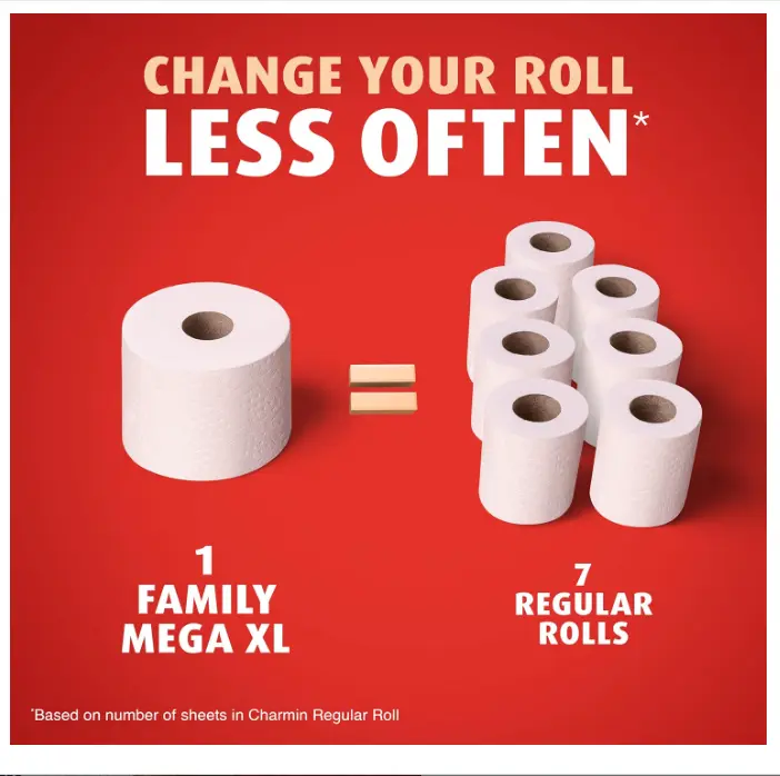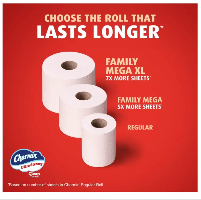 ·FAMILY MEGA XL ROLLS: Pack includes 6 Family Mega XL Rolls of Charmin Ultra Strong Clean Touch toilet paper, each with 385 sheets, equivalent to 42 regular rolls for extensive bath tissue supply.