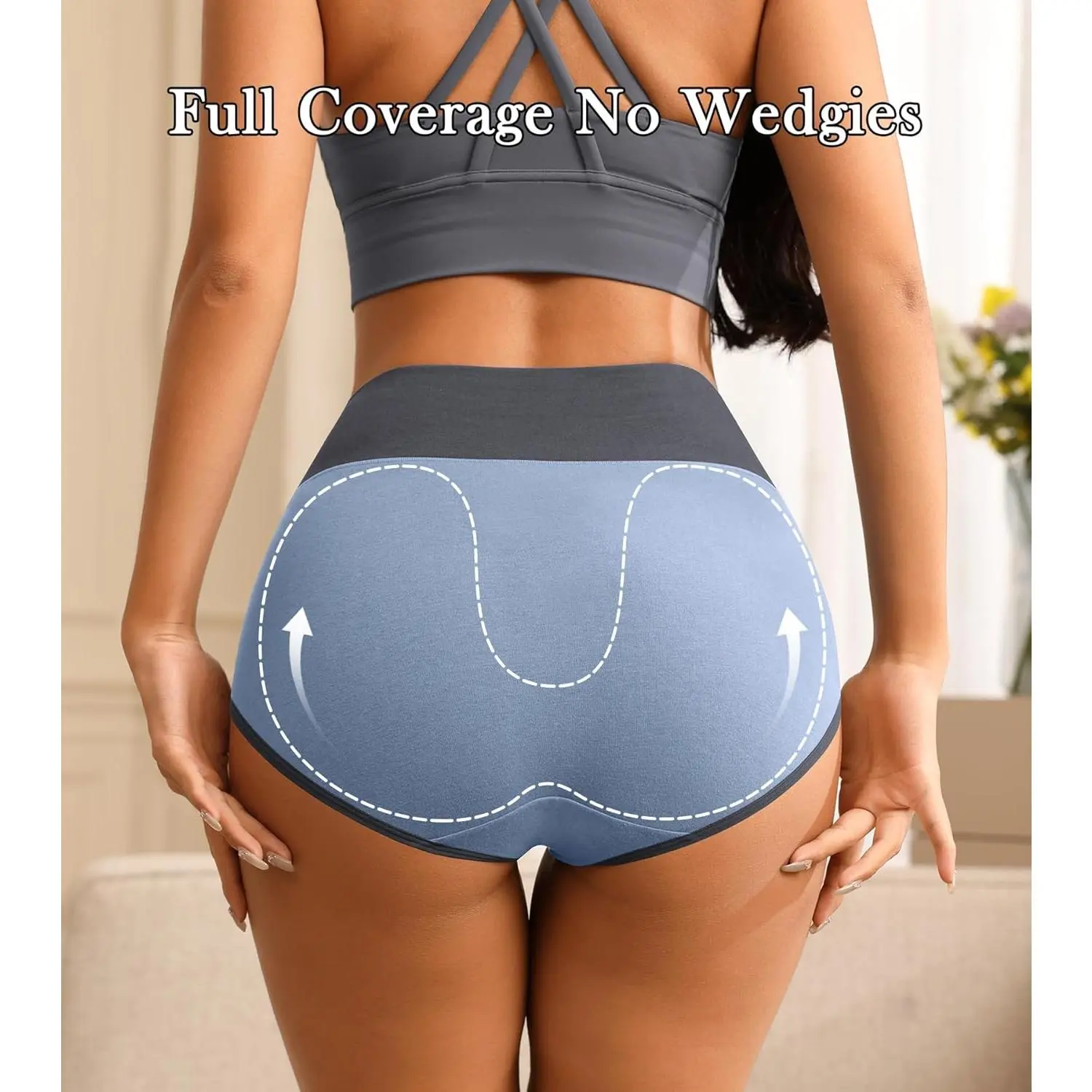 Womens Cotton Underwear High Waisted Panties Full Coverage Soft Stretch Breathable Ladies Briefs 5 Pac
