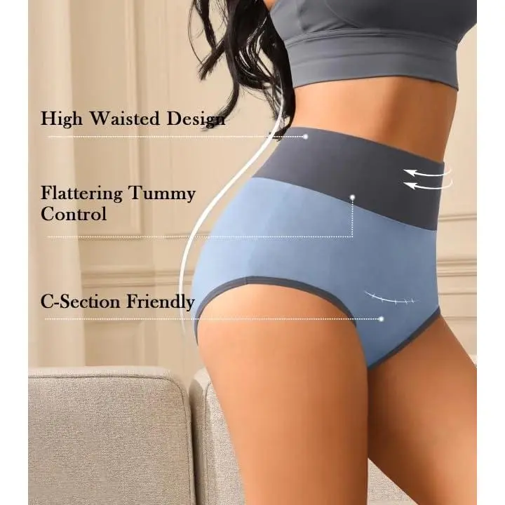 Women's Cotton Underwear Tummy Control High Waisted Panties Stretch Comfortable Full Coverage Breathable Briefs 4/5 Pack