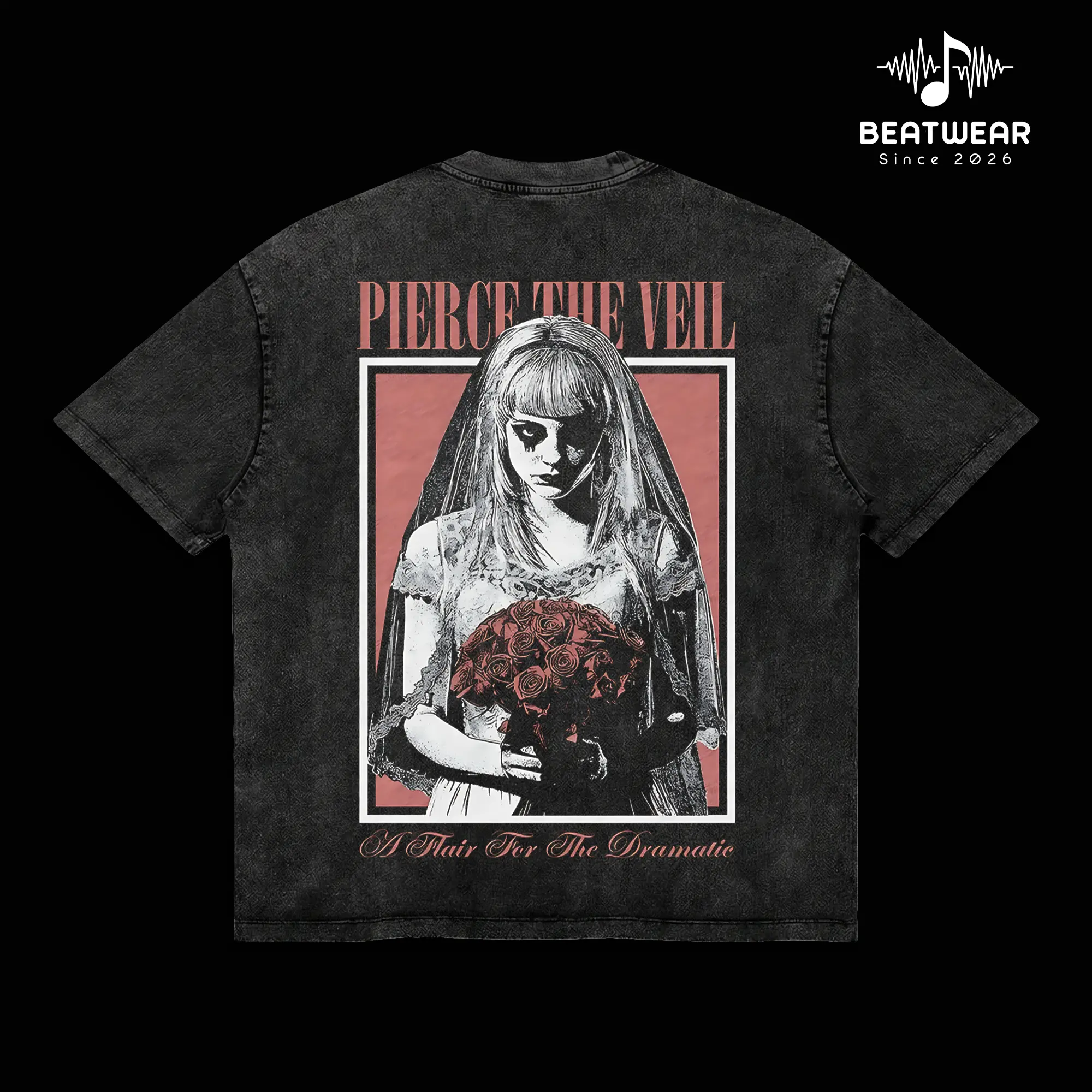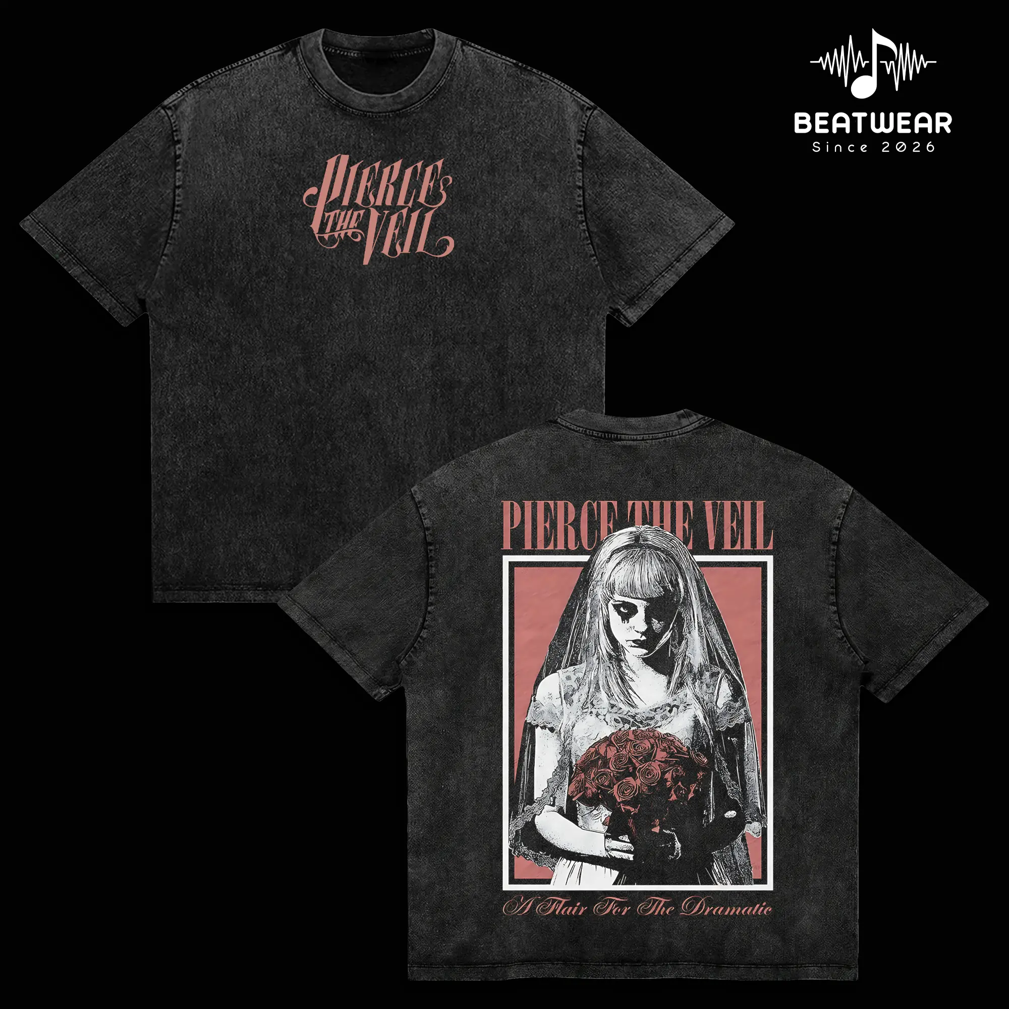 Pierce The Veil A Flair for the Dramatic Oversize Lightweight Acid Washed Tee Rock Music Metal Gothic Punk Emo Grunge Post-hardcore Graphic Design Top Cotton Streetwear T-Shirt Crewneck Clothes Menswear Womenswear