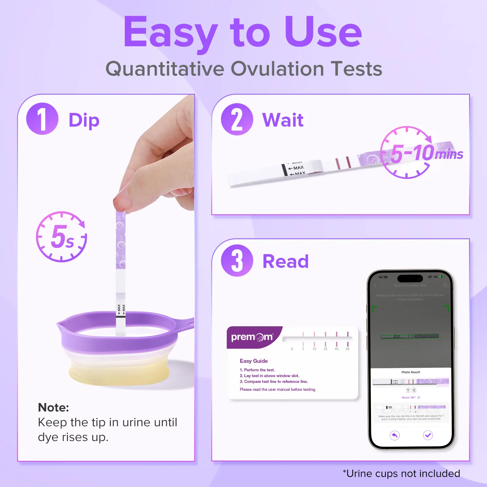 ·The Quantitative Advantage (LH Tests): Unlike traditional qualitative tests that only give a positive or negative result, our quantitative tests provide a numerical LH range from 0 to 65 mIU/mL. Snap a picture of your test result. The smart Premom App automatically reads the strip, translates it into a numerical LH value, and charts your complete LH progression over time.