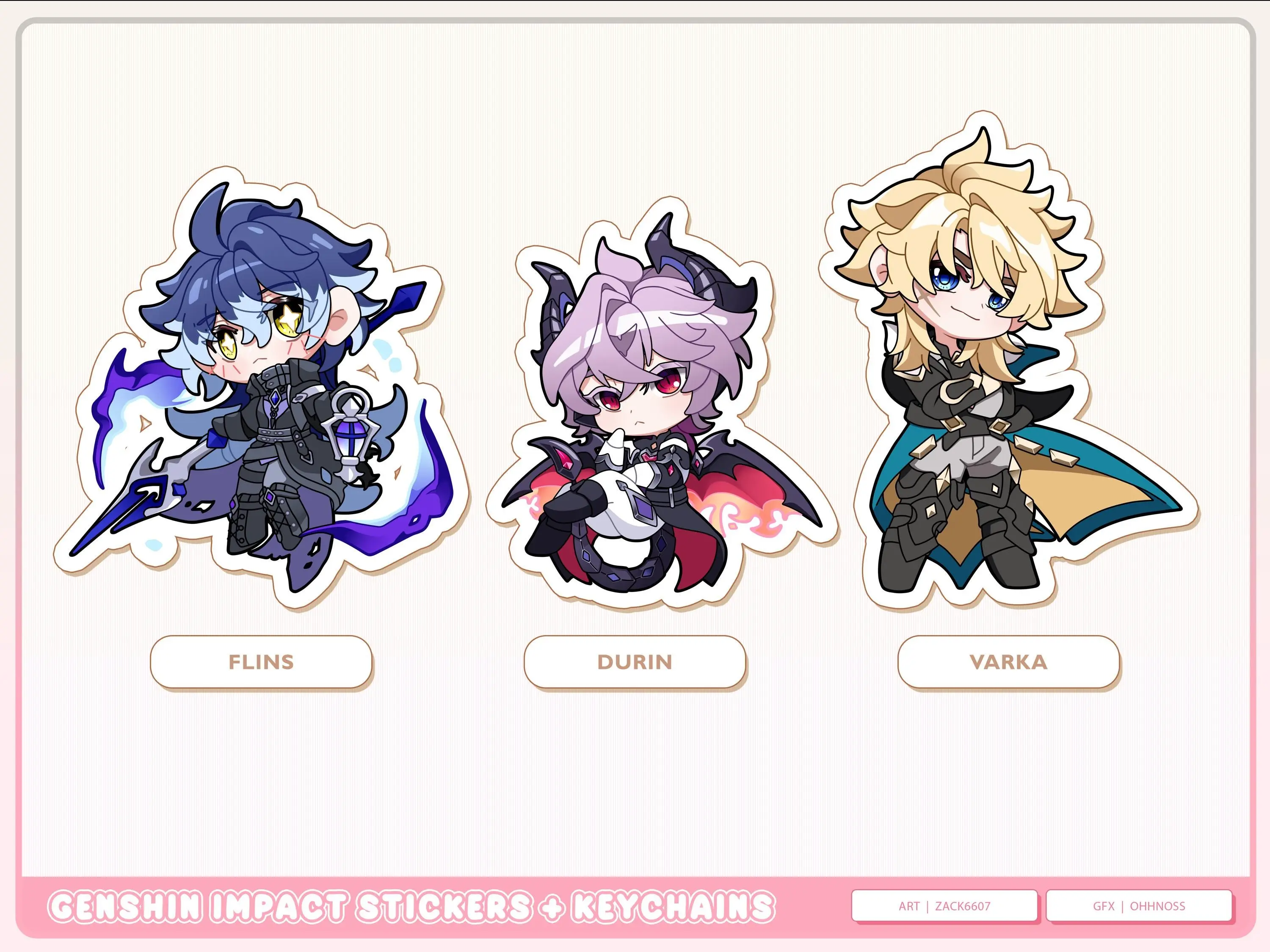 Genshin Impact Nod Krai Keychains Flins, Durin and Varka
