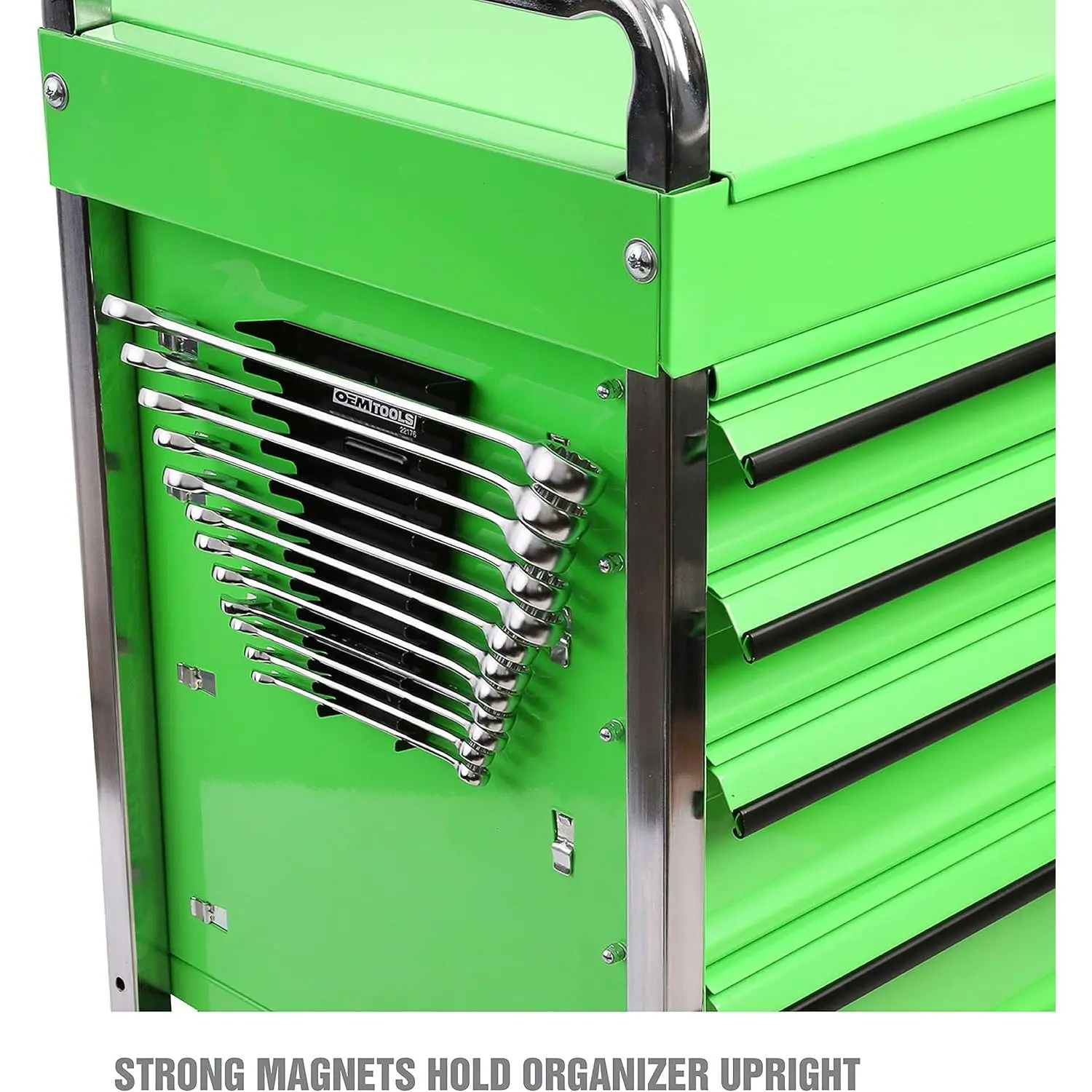 Easier Toolbox Organization: Stores up to 12 standard wrenchesThese handy tool box organizers eliminate wasted time spent looking for the right tooltool organizer tray fits SAE or metricFits Anywhere: An excellent wrench organizer for tool box drawer, pegboard, wall or shelfLow profile design allows it to slide seamlessly into most tool chest drawersDamage-Free Mobility: The foam-shielded magnet in the base of the tool box organizer tray protects paint finishes from scratching and marringKeep surfaces damage freeVersatile Magnetic Storage: Attach this 12-tool wall holder to any ferrous surface around the garage or shopThis sturdy wrench keeper’s powerfully magnetic base provides a secure holdConvenient and Efficient: Optimize time under the hood by keeping the wrenches you need at your fingertipsWrench holders allow you to stay organized and complete the job faster