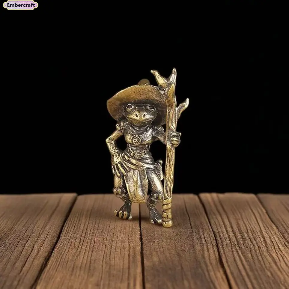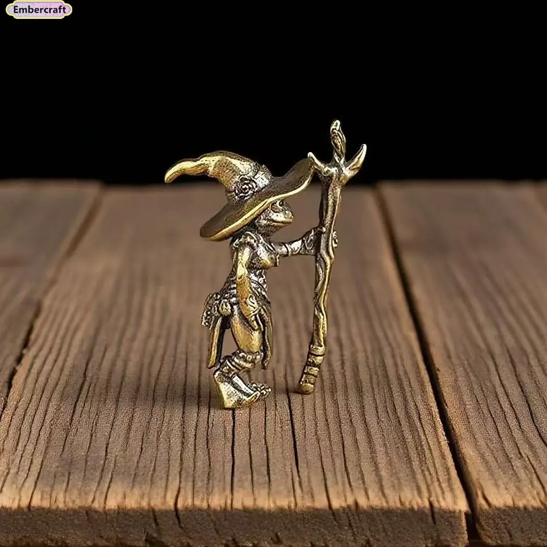 Brass Frog Wizard Statue – Guardian Mage Frog Figurine for Desk Decor