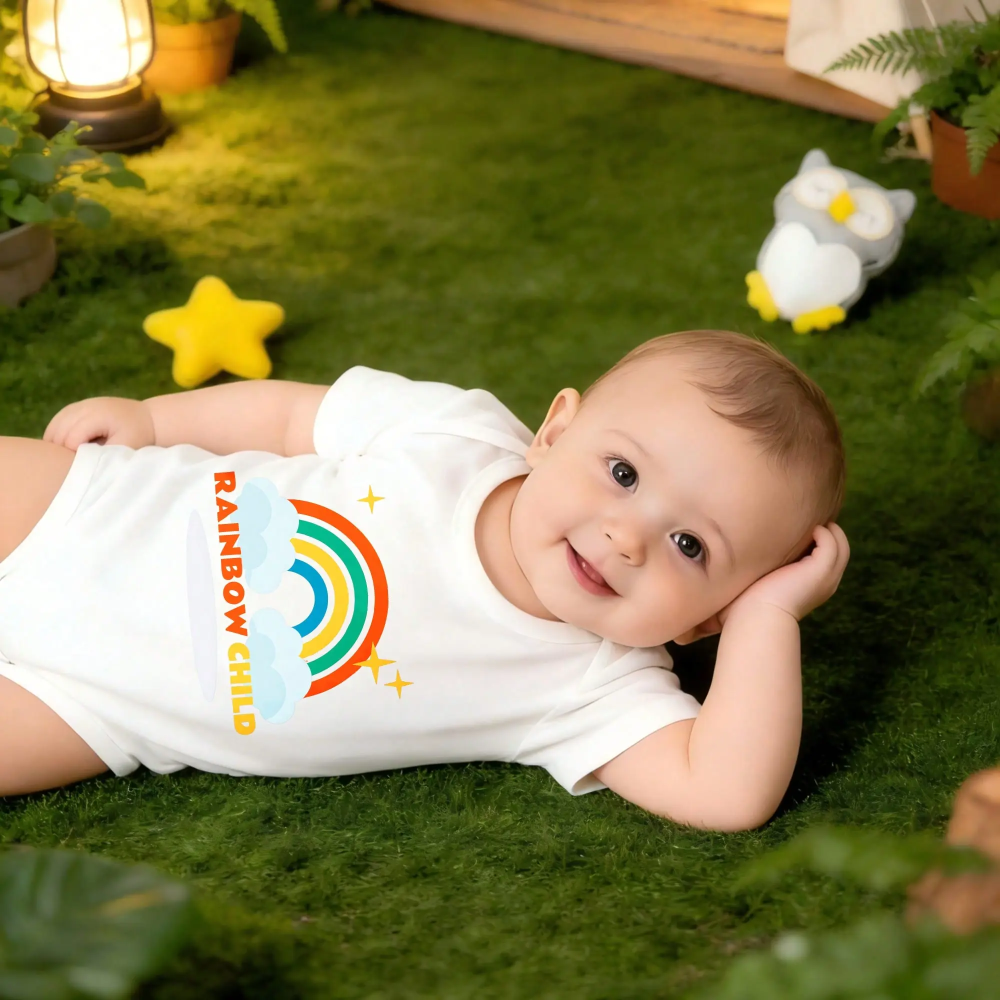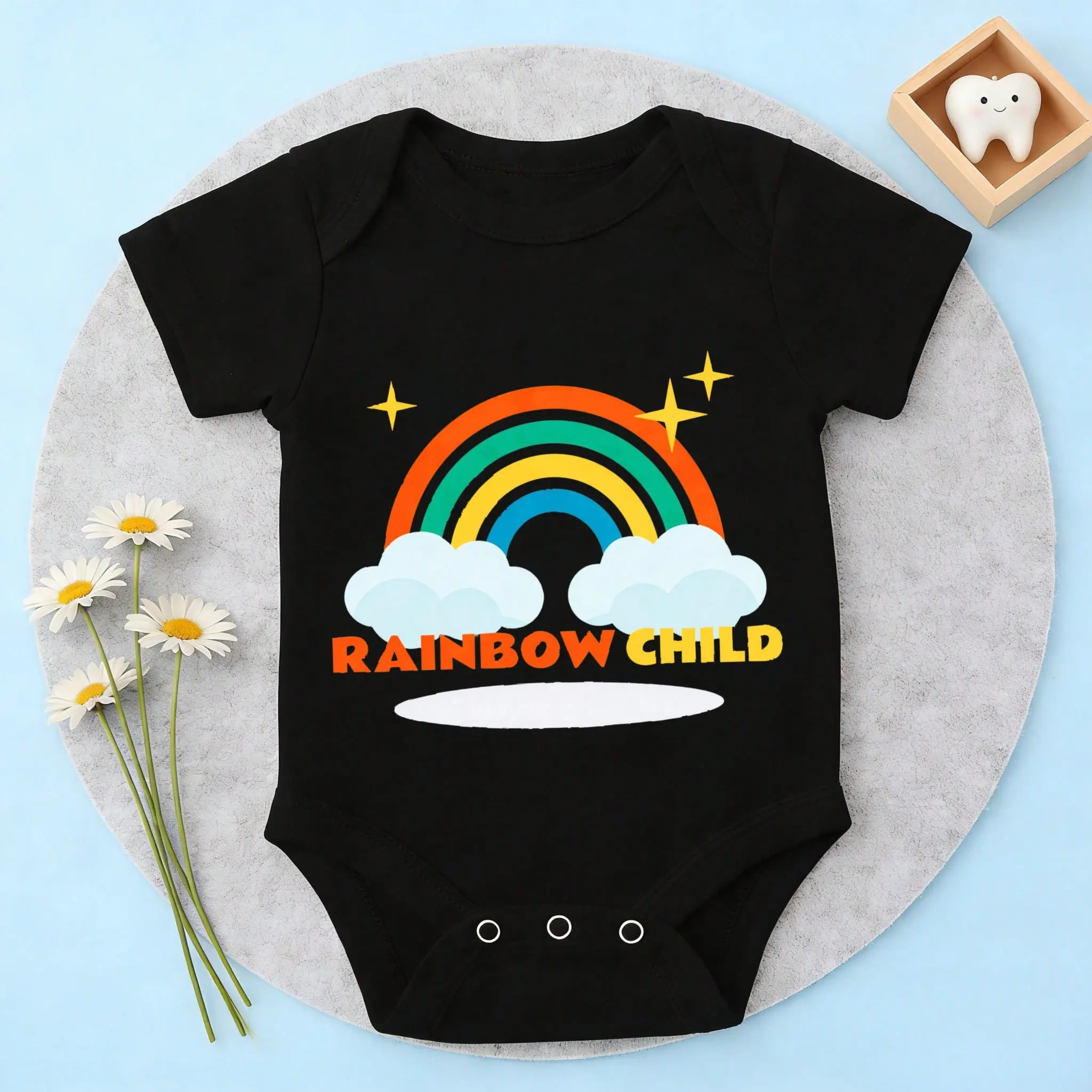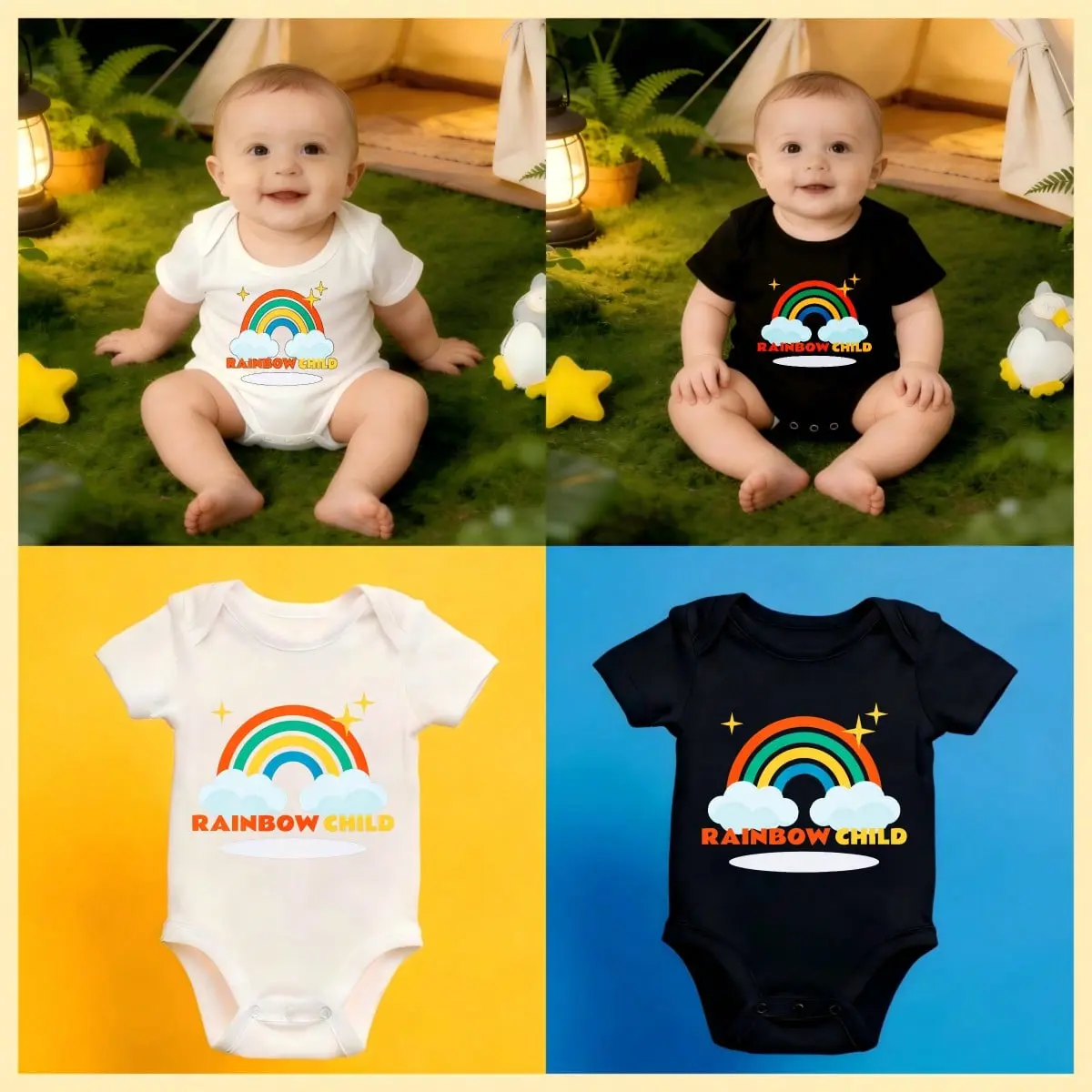 Cotton Baby Bodysuit Rainbow And Clouds Print 100% Pure Cotton Tag-Free Snap Closure Breathable Cute Print Perfect For Daily Wear