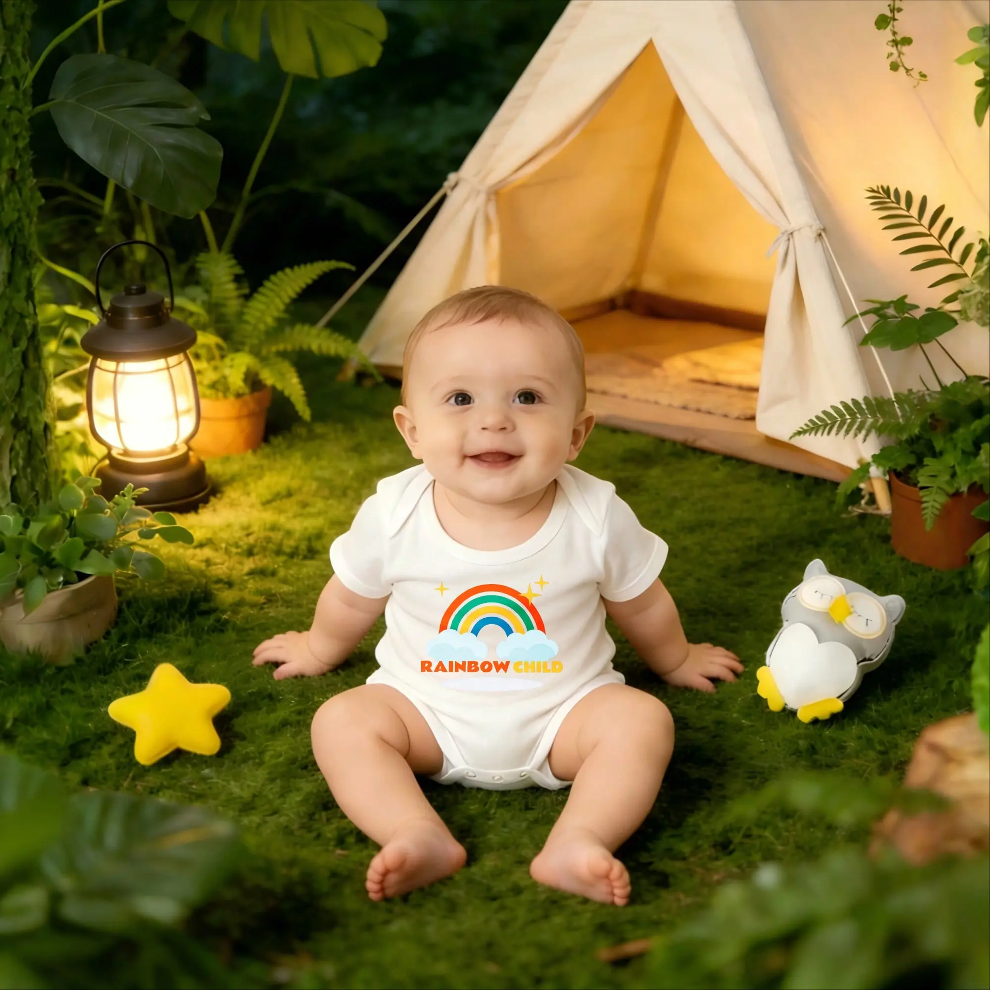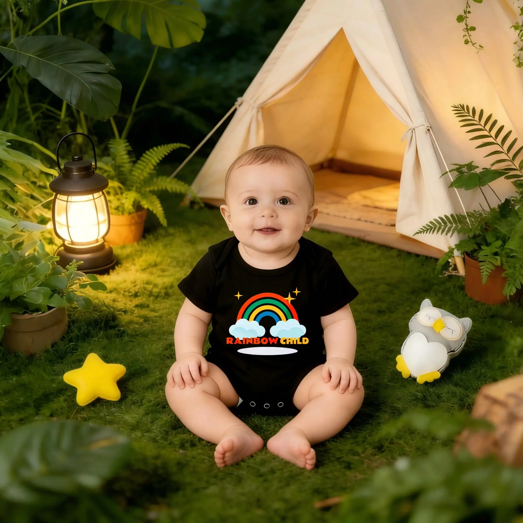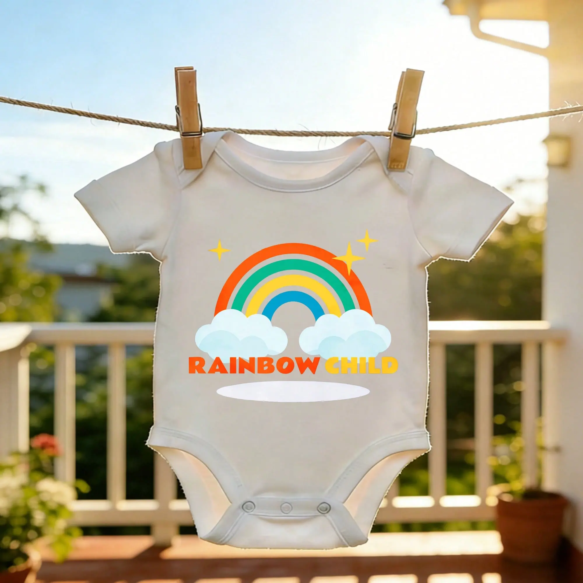 Cotton Baby Bodysuit Rainbow And Clouds Print 100% Pure Cotton Tag-Free Snap Closure Breathable Cute Print Perfect For Daily Wear