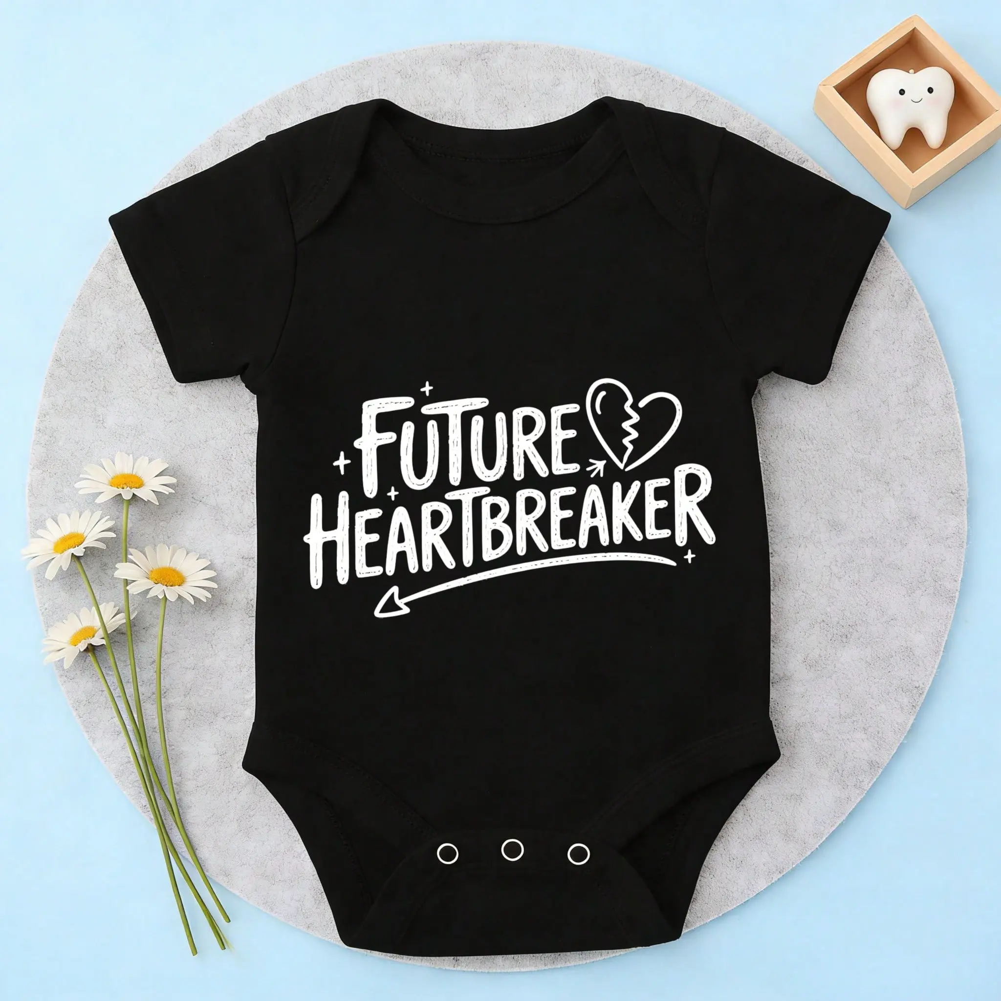 Cotton Baby Bodysuit Future Heartbreaker Print 100% Pure Cotton Tag-Free Snap Closure Breathable Cute Print Perfect For Daily Wear