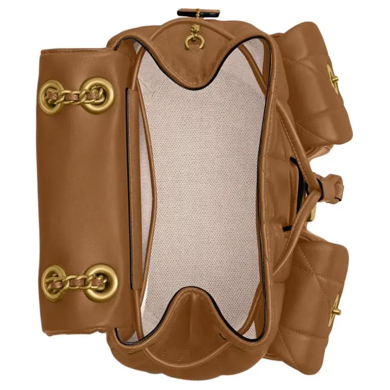 Materials: Premium smooth lambskin leather—soft, lightweight, and naturally supple with a refined matte finish. Hardware is antique-brass-finished metal for enduring contrast and durability.