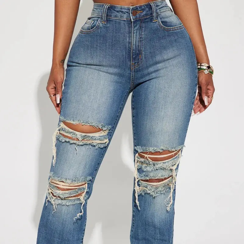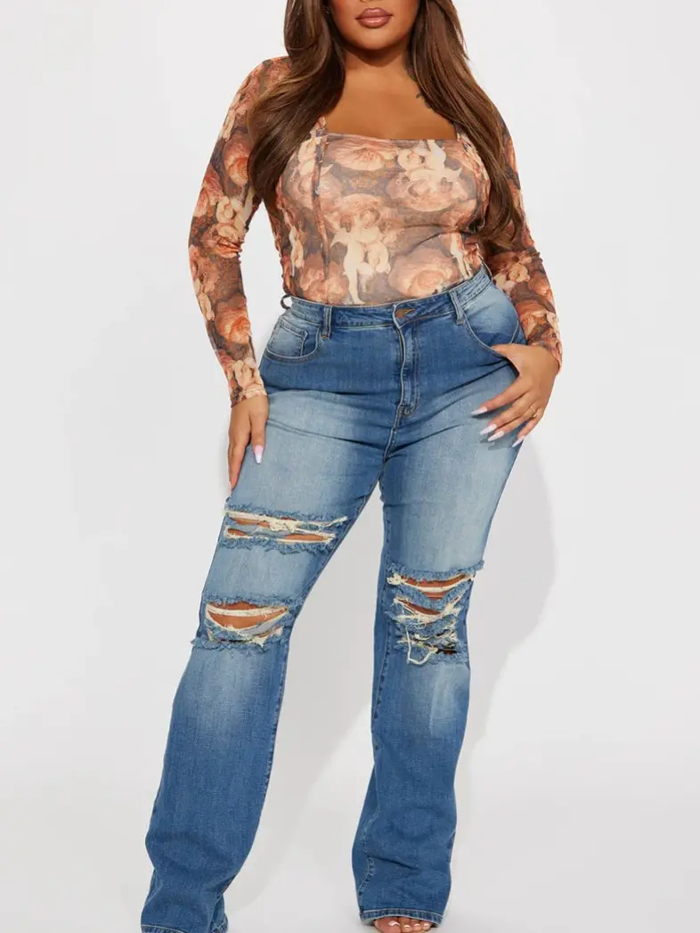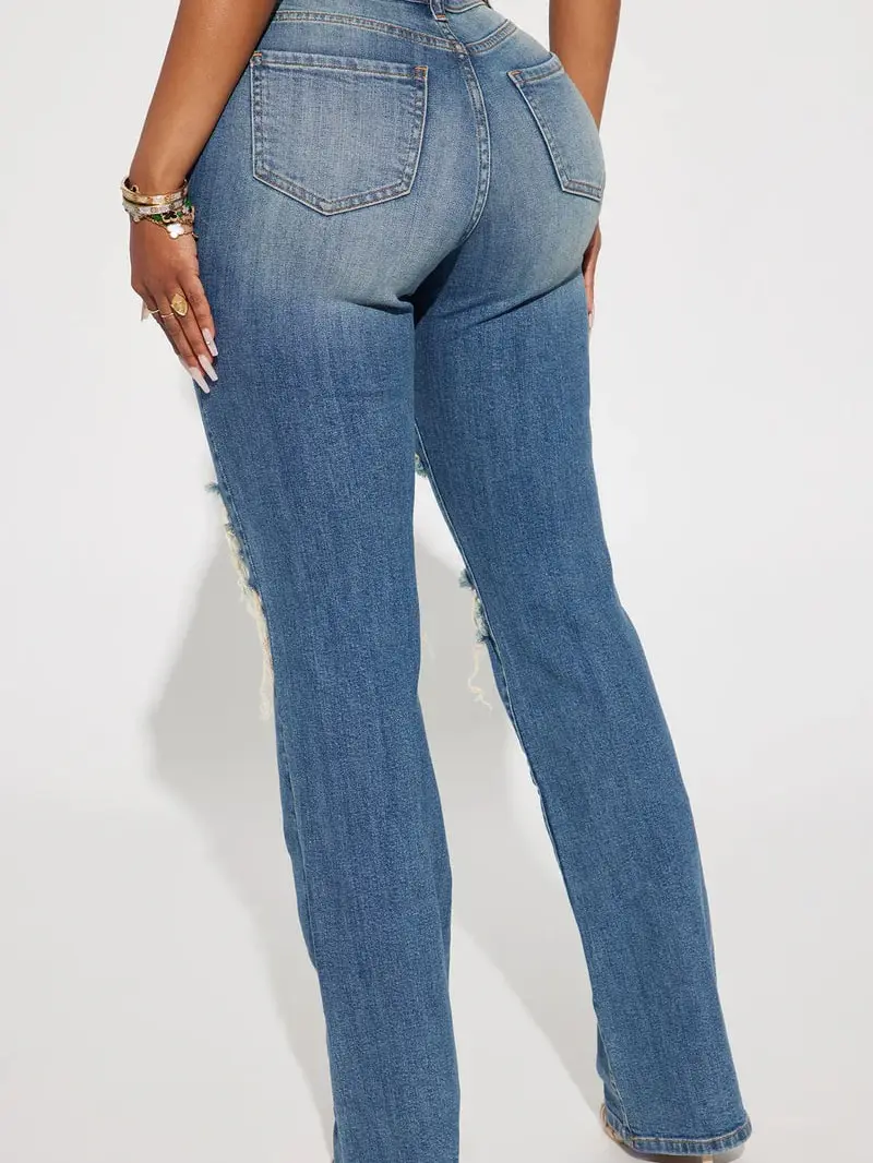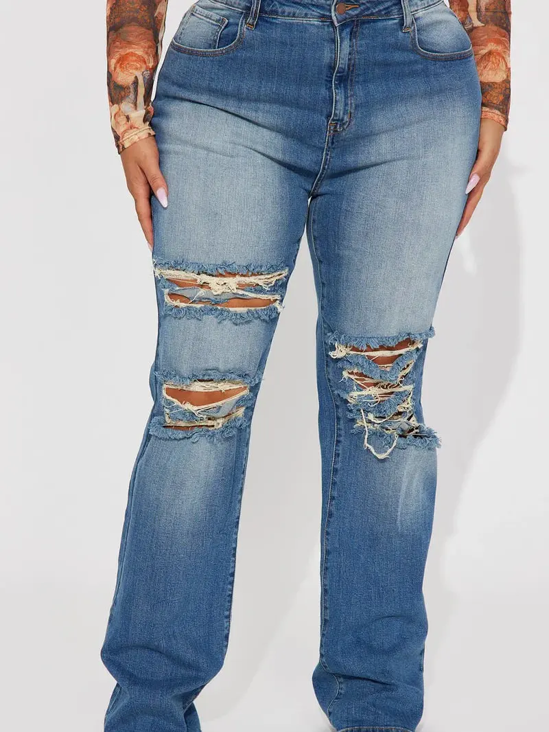 Tough Love Baggy Ripped Straight Leg Jean - Medium Wash
