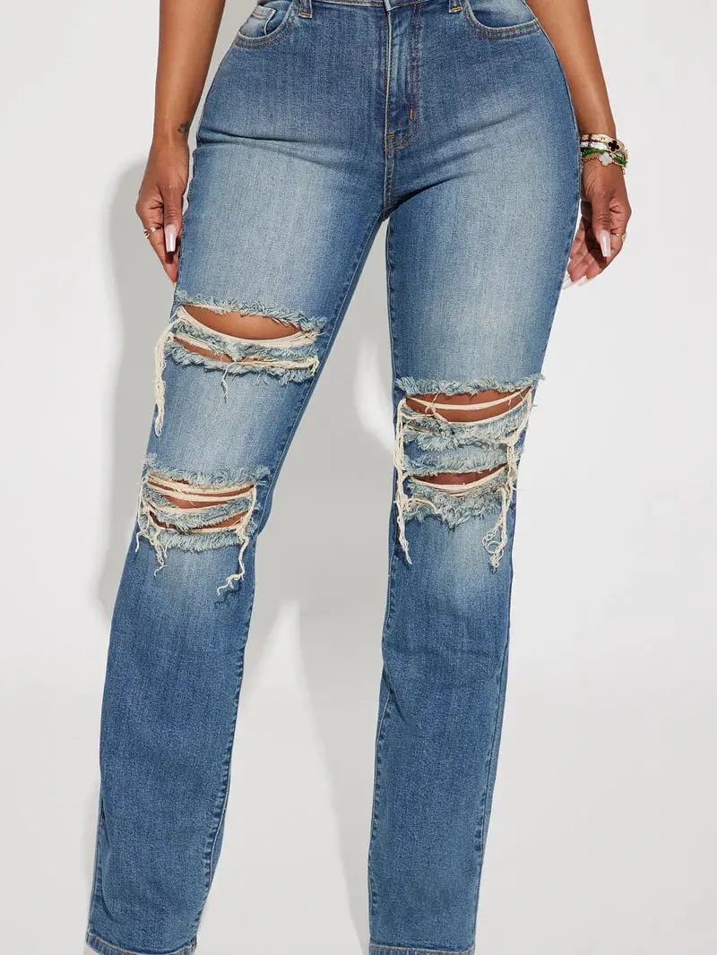 Topanga 90's Ripped Straight Leg Jeans - Medium Wash