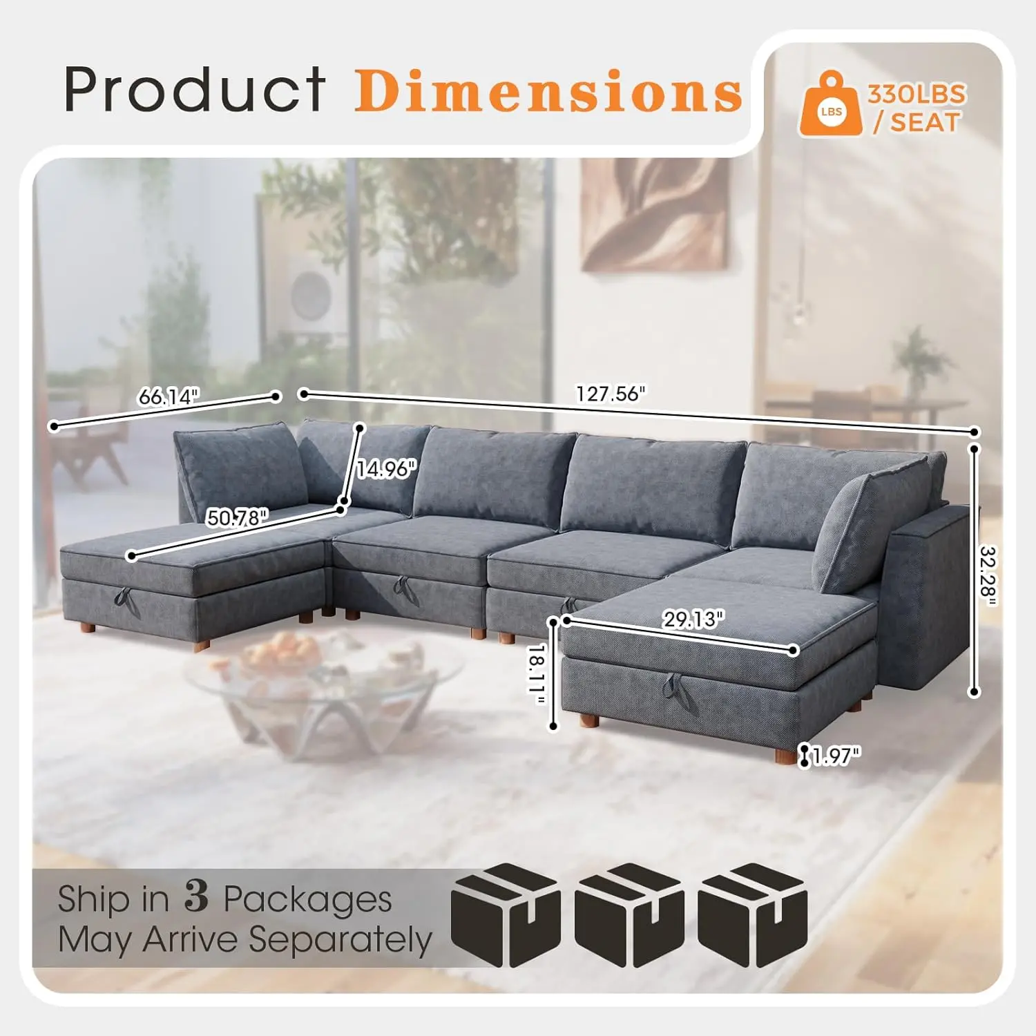 ·【Built-in Storage in Every Seat】Each seat of the sectional couch is equipped with a large hidden storage compartment, positioning it as a practical couch with storage and modular sectional sofa with storage. It stores blankets, remotes, toys and other daily items, optimizes space usage, reduces clutter, and keeps the space organized, serving as a functional piece for living room sectional furniture sets.