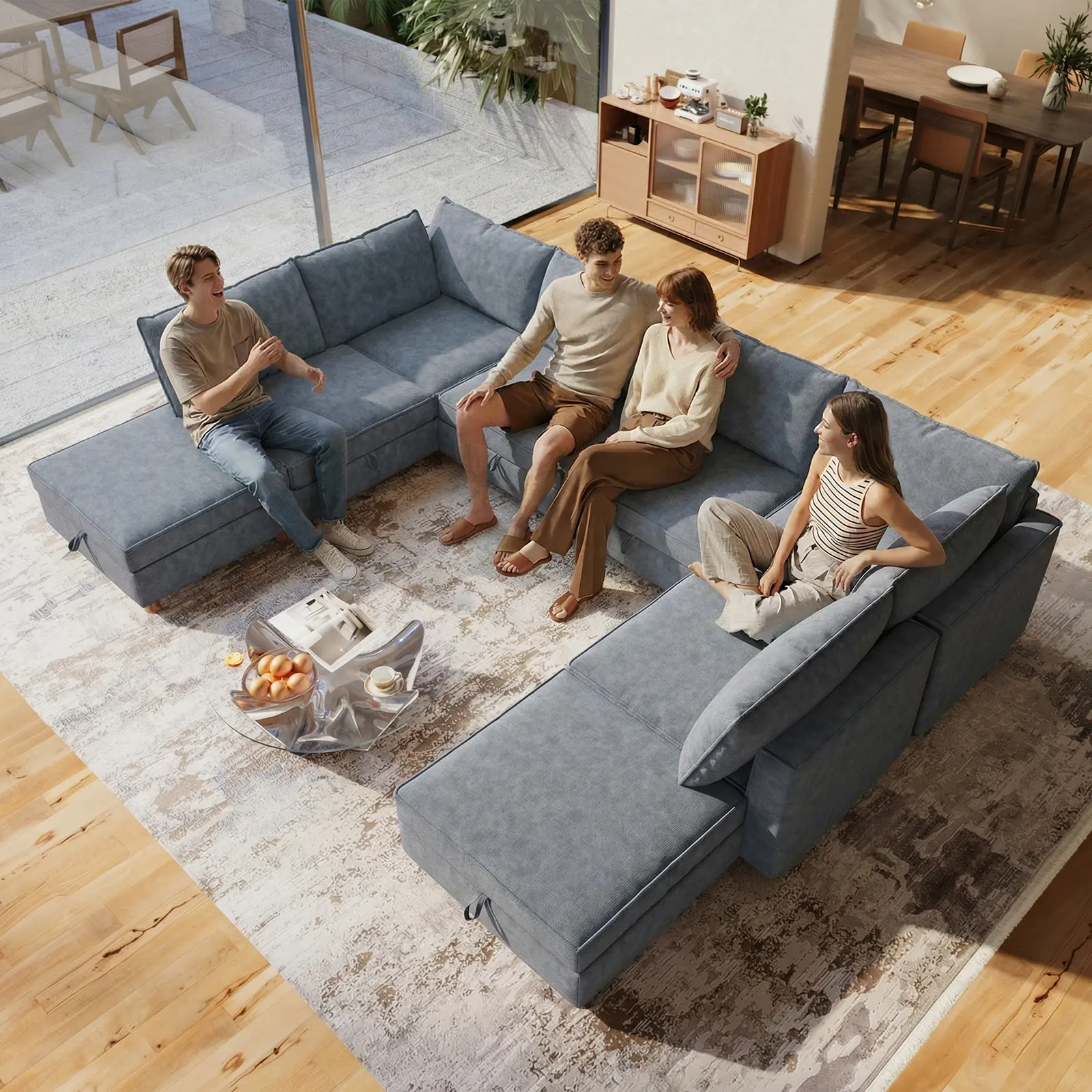 ·【Solid Wood Frame & Sturdy Load-Bearing】Built with a solid wood frame and reinforced joints, this oversized sectional sofa delivers high stability and sturdiness. As one of the large sectional couches for living room, each seat supports up to 330 lbs for heavy daily use. The solid structure avoids creaks and deformation, ensuring long-lasting durability for sectional sofa products.