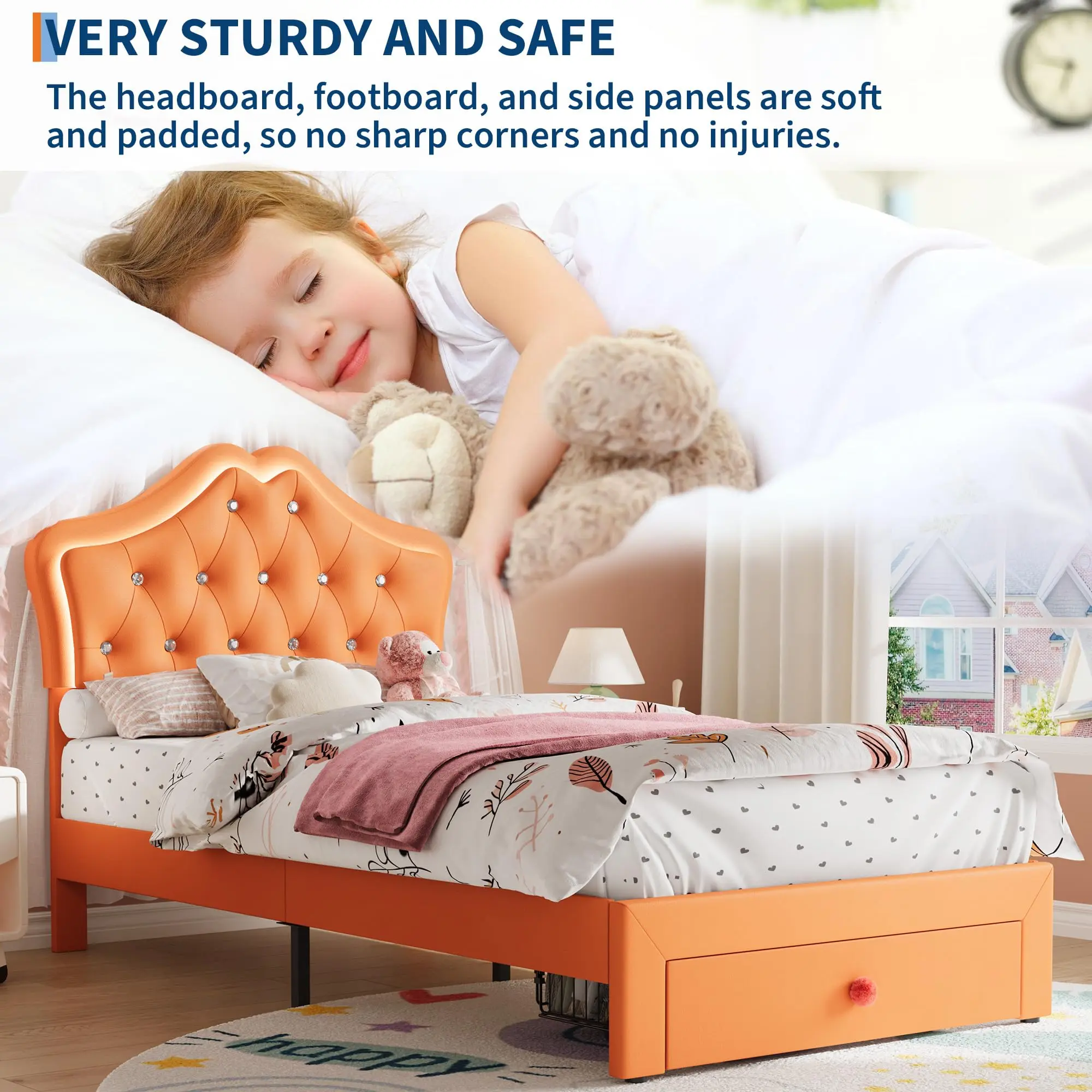 Create a cozy and stylish bedroom with this twin size bed frame, featuring a soft upholstered headboard with elegant crystal tufting. Perfect for kids and teens, it combines modern design with everyday comfort.
