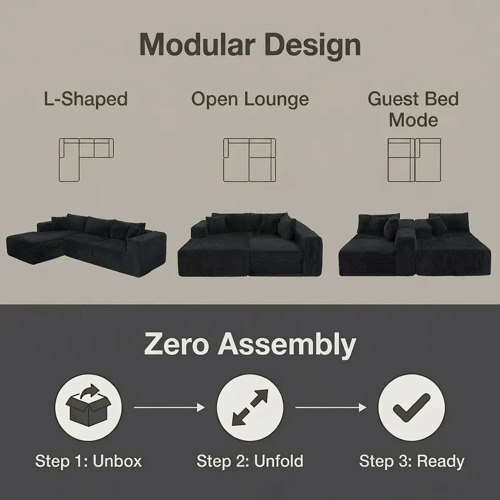 ·Modular Design That Adapts to Any Room: One of the most flexible sectional sofas — set up as L shaped couch, open lounge, or guest bed in seconds; lightweight pieces move easily between living rooms and bedrooms; perfect for families and small spaces