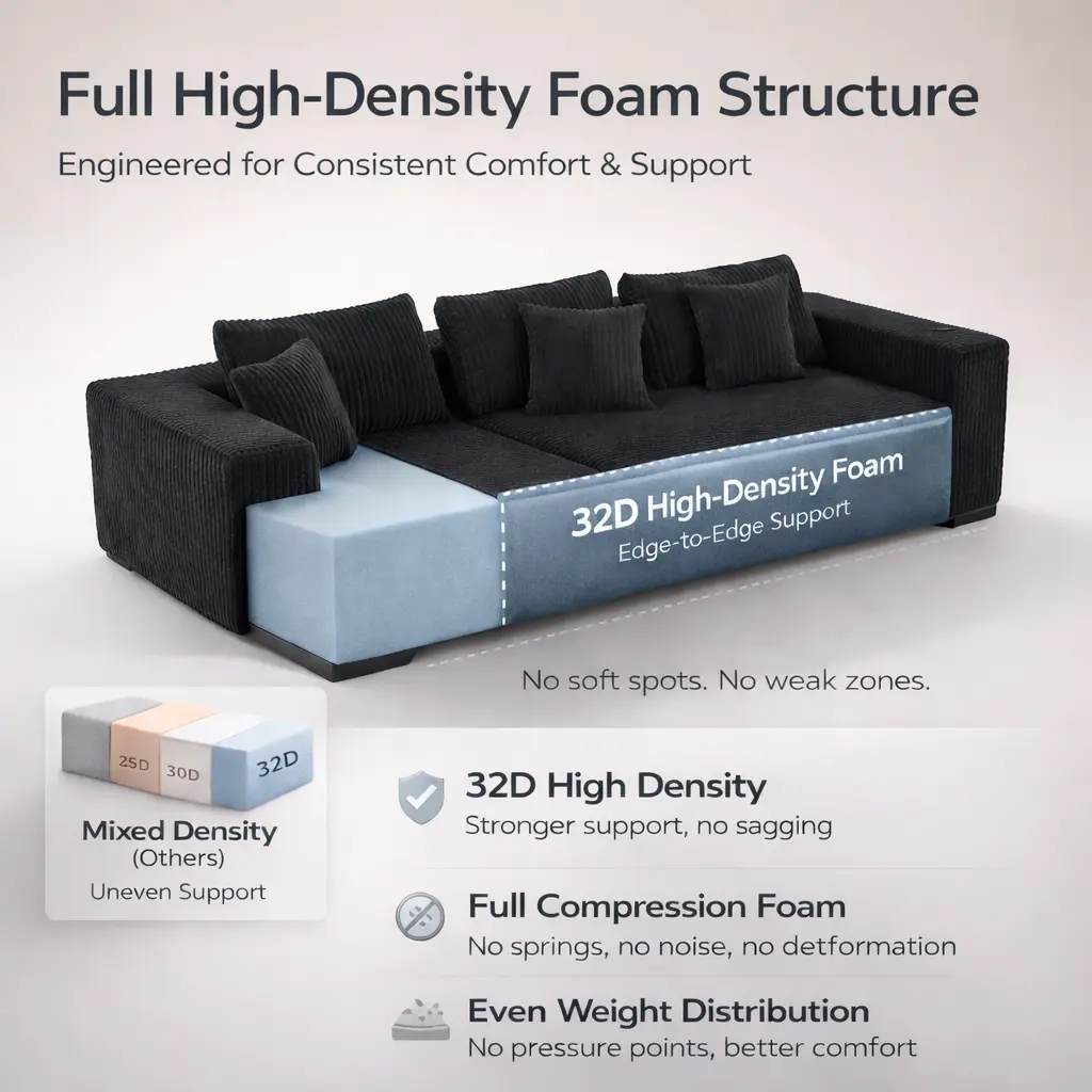 ·Cloud Comfort That Won’t Sag or Slide: Unlike cheaper boneless couches that flatten and shift on hardwood floors, our sag-free foam holds its shape and stays in place; deep 30" seats, premium corduroy, zero assembly — just unbox, unfold, and sink in