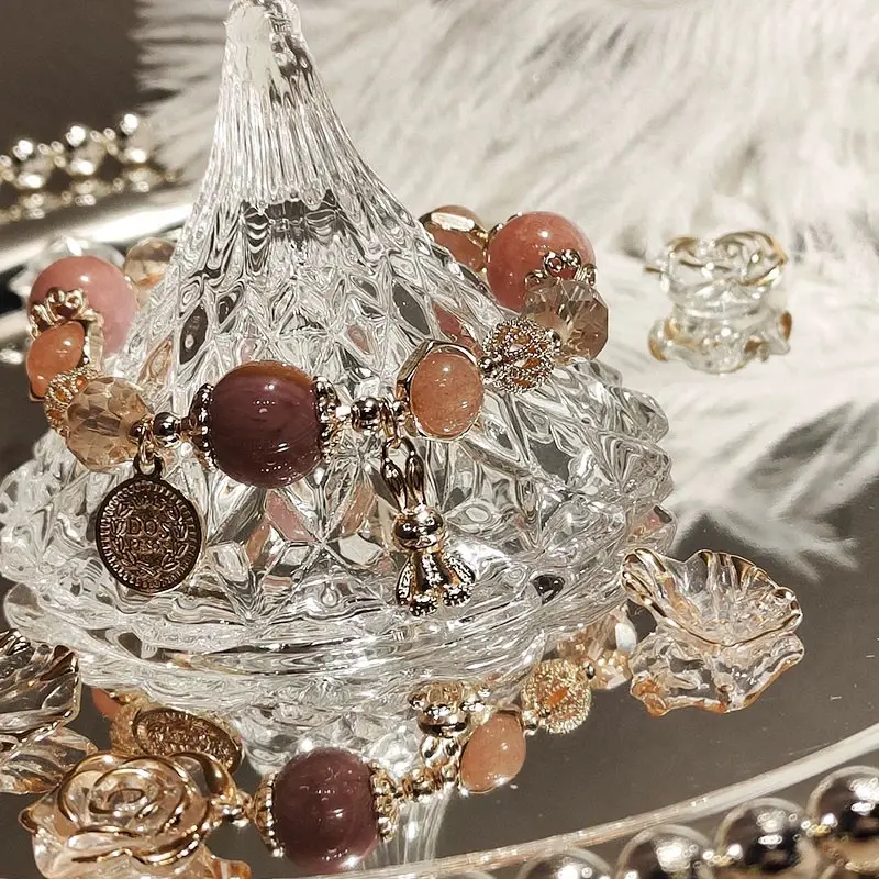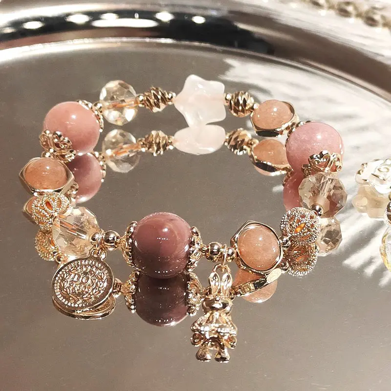1-Piece Bohemian-Style Pink Rose Quartz, Star, and Rabbit Beaded Stretch Bracelet Set - Stackable Jewelry for Men and Women, Ideal for Daily Wear and Music Festivals