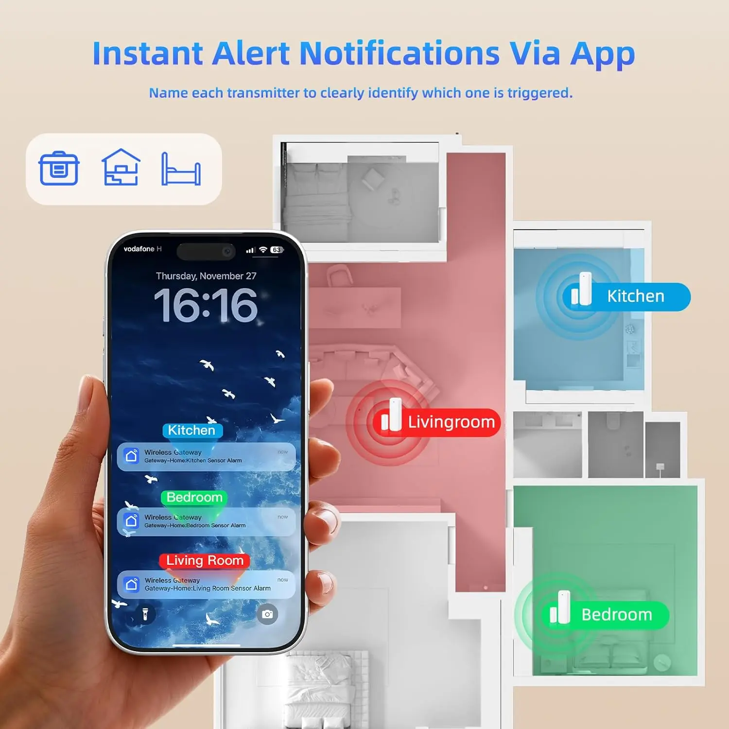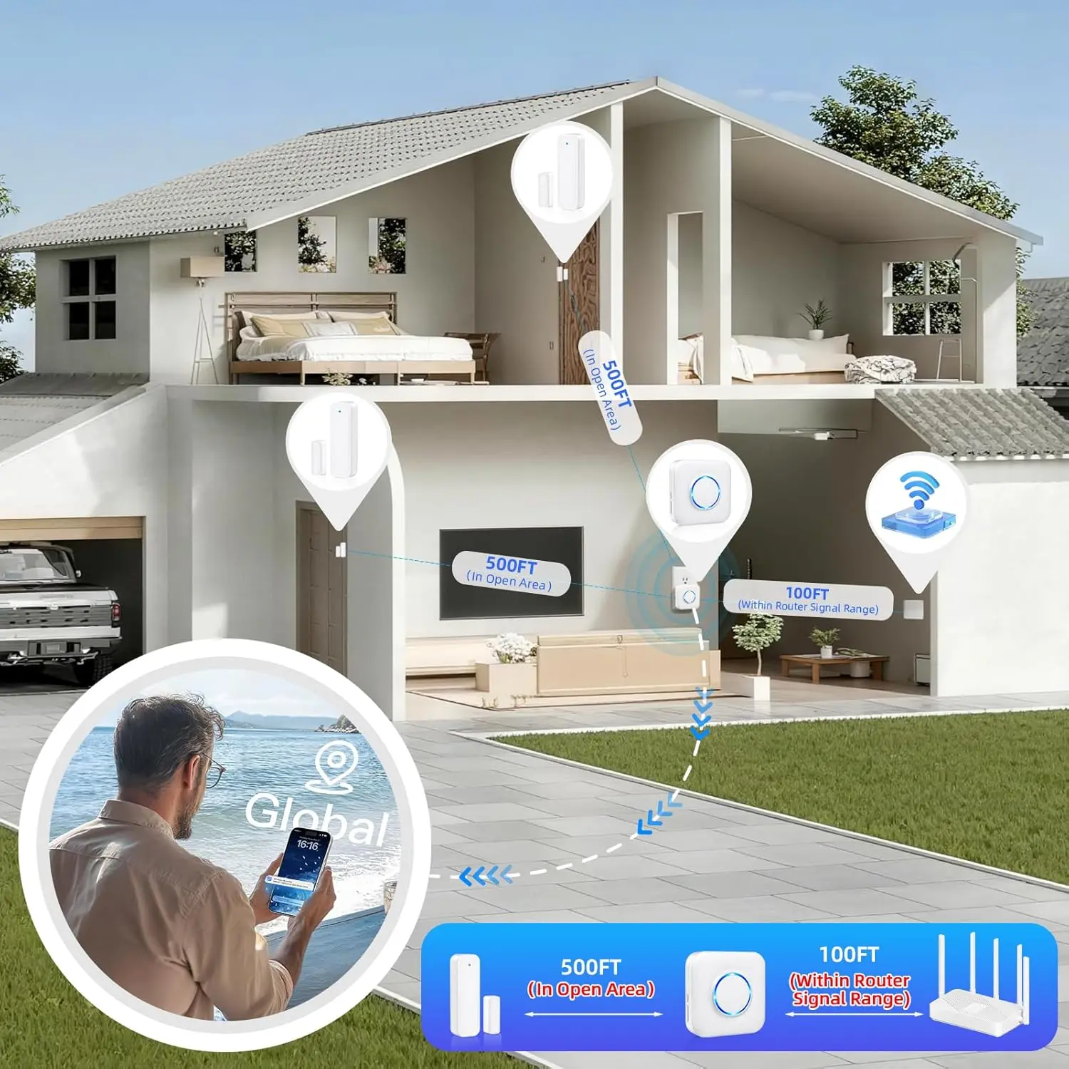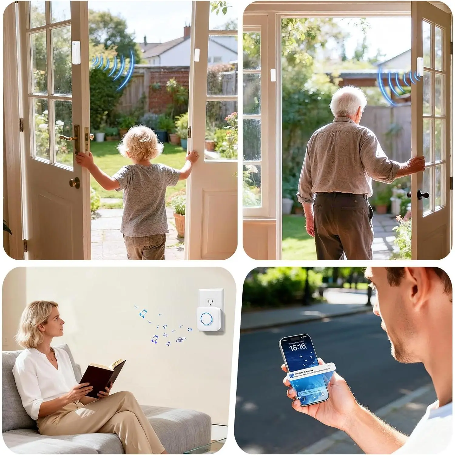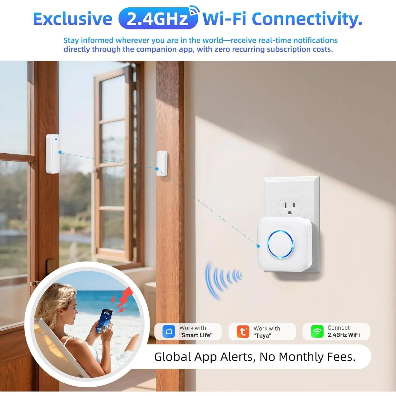 WiFi Door Sensor Chime, Smart Door Open Alert Window Sensor for Business/Home/Kids Safety, Real-Time App Notification, 500ft Range, 32 Melodies, 5 Volume Levels, Window Contact Sensor Alarm Kit