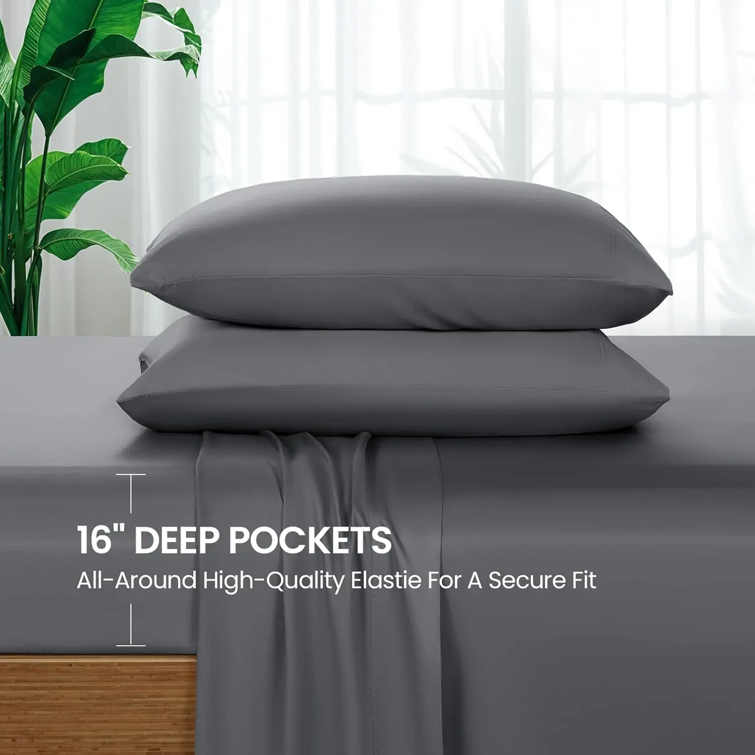 100% Viscose Derived from Bamboo_Sheets Queen Size, Breathable & Cooling Bed Sheets for Hot Sleepers, Hotel Luxury Bedding Sheets, 16" Deep - 4PC (Dark Grey,Queen)