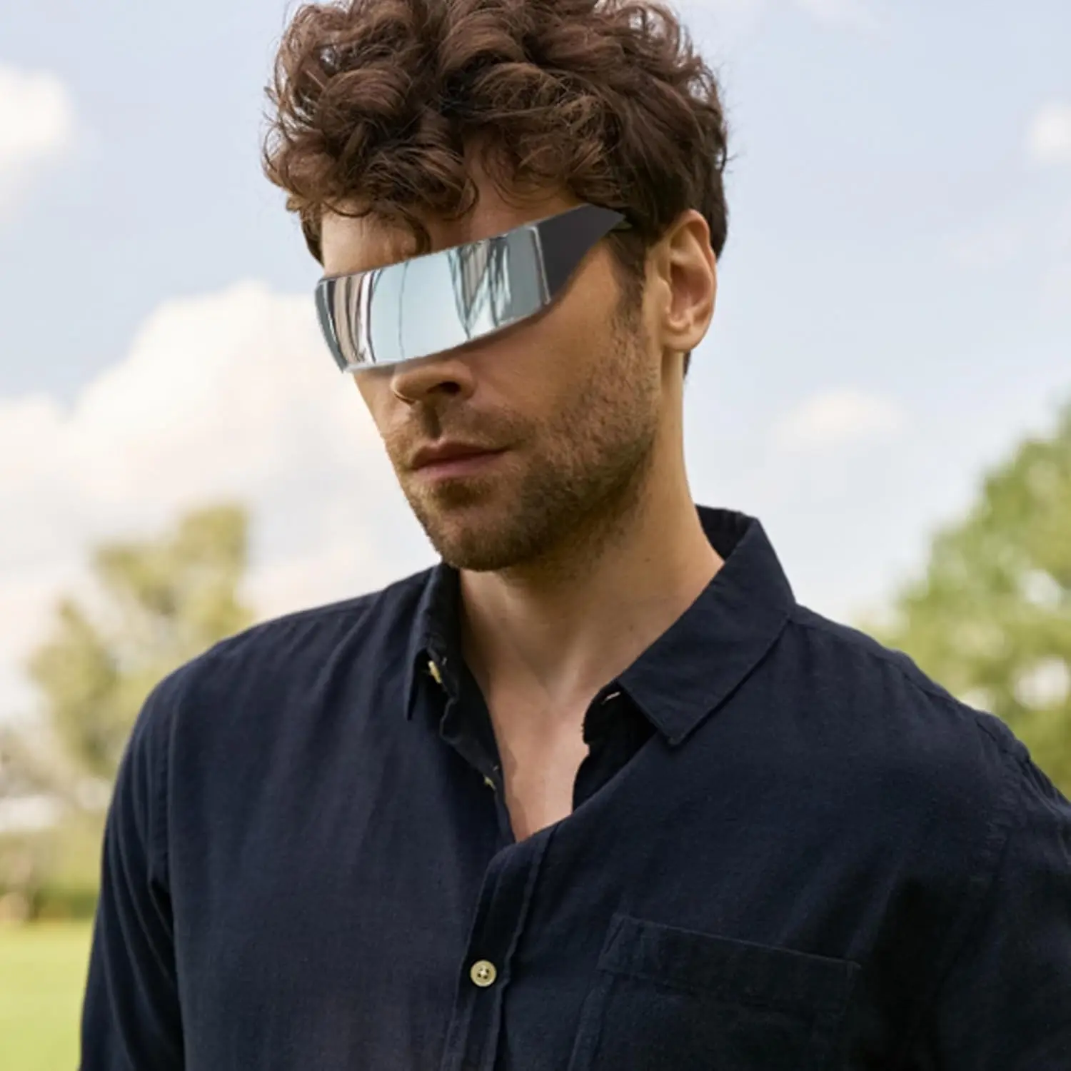 Step into the future with these futuristic sunglasses! Inspired by cyberpunk aesthetics, these wrap-around shades boast a high-tech, sci-fi design that will turn heads. The reflective mirror lenses not only look sleek but also provide superior sun protection, shielding your eyes from harmful UV rays. Crafted with a unisex style, these sunglasses are the ultimate fashion statement for anyone seeking a bold, cutting-edge look. Whether you're hitting the streets or attending a cosplay event, these silver mirrored glasses will elevate your ensemble to the next level.