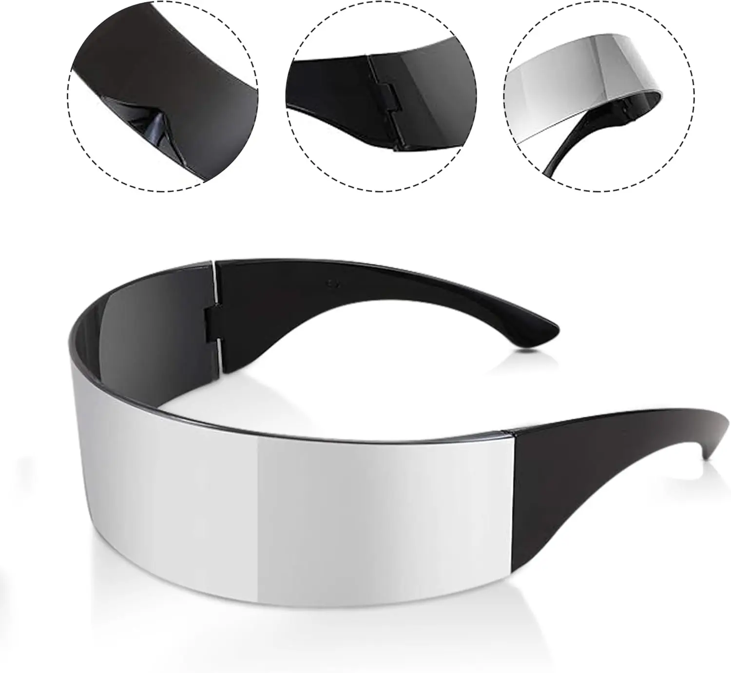 Futuristic Mirror Wrap around Glasses | Cyber Sunglasses | Futuristic Shades | Back to the Future Glasses | Reflective Mirror Lens Panoramic Vision | Mirrored Lenses | Silver