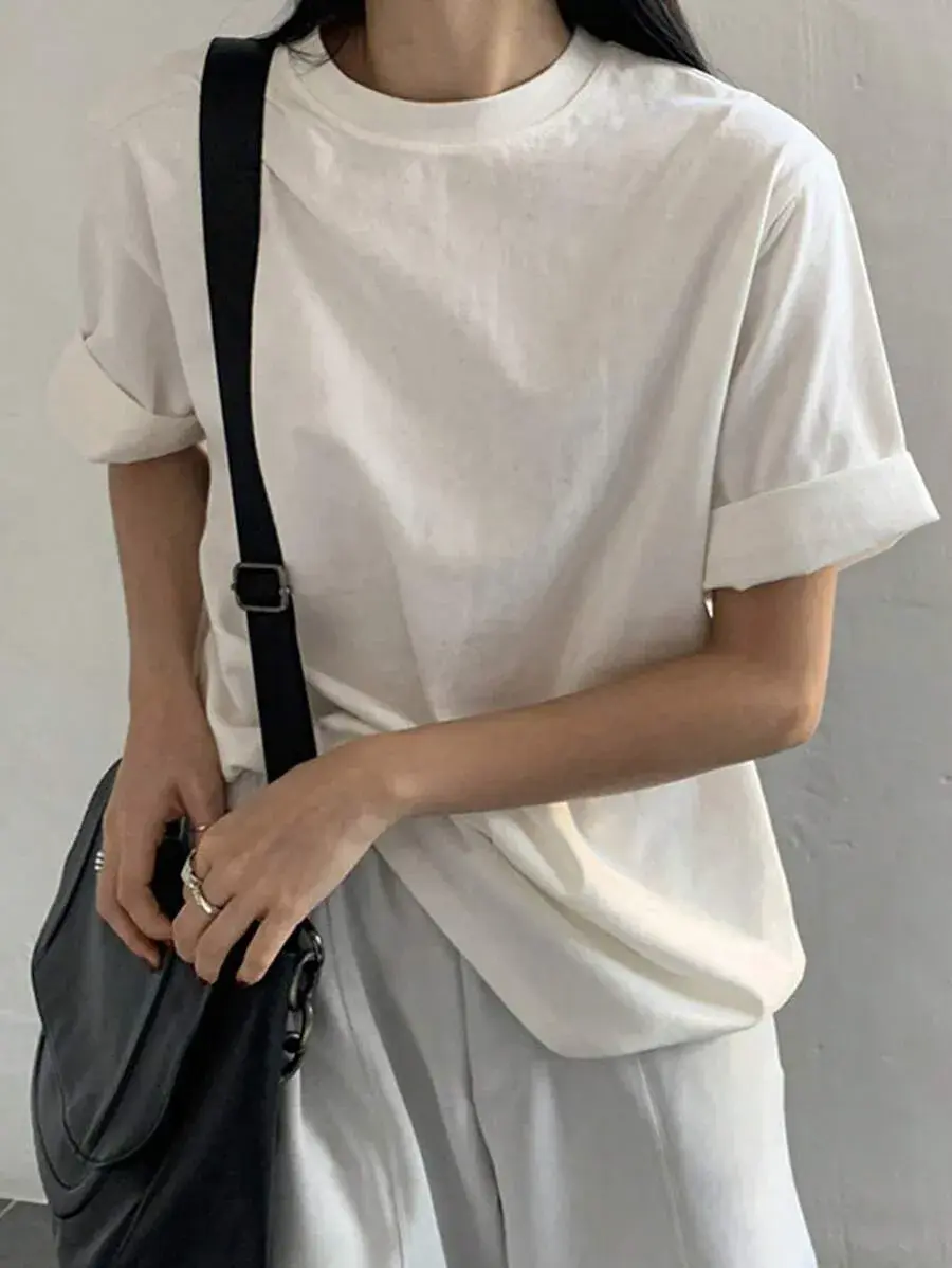 Product Description: DAZY Solid Round Neck Oversized T-Shirt