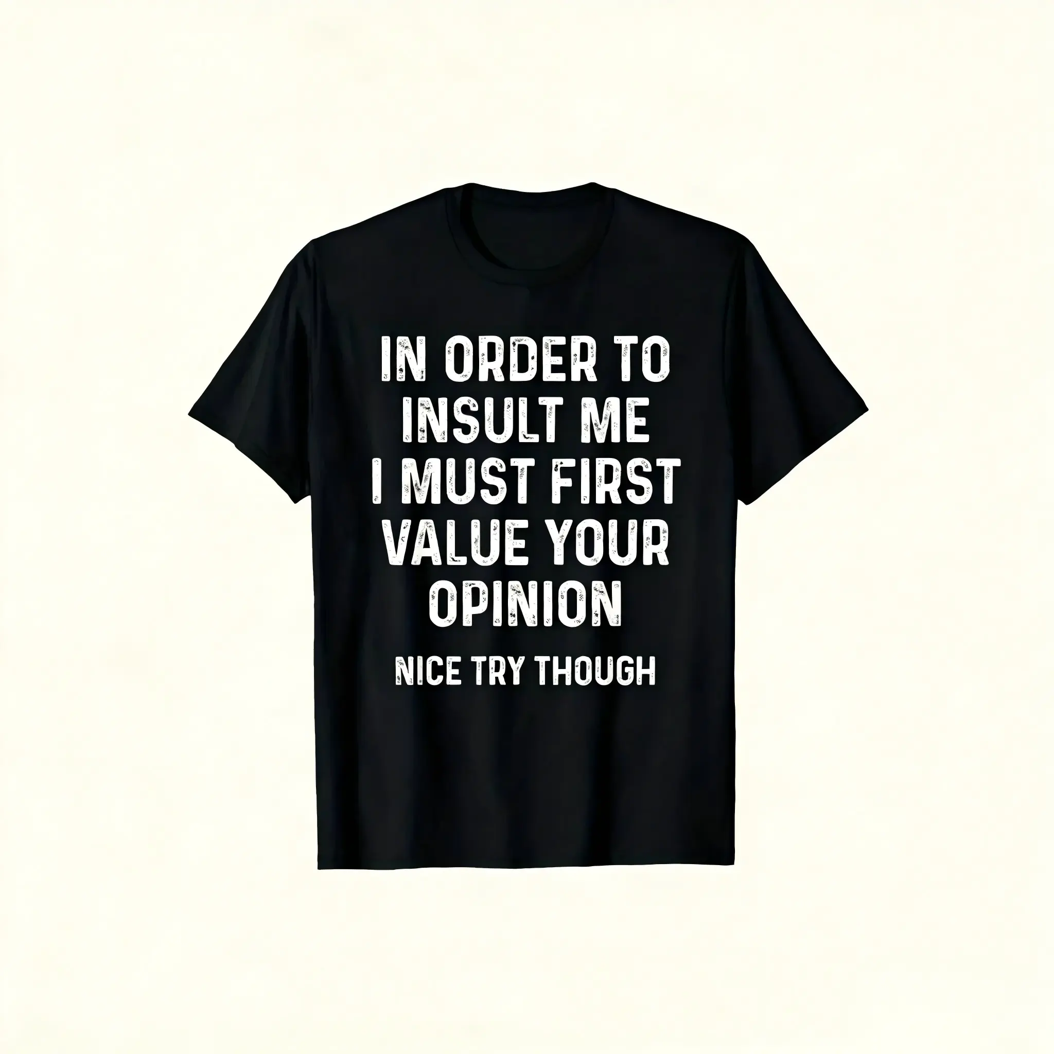 Funny Sarcastic Quote T-Shirt - "In Order to Insult Me I Must First Value Your Opinion" - Casual Round Neck Tee with Iron- Transfer Print, - Fit for Humor Apparel grandma's favorite shirt trendy t-shirt