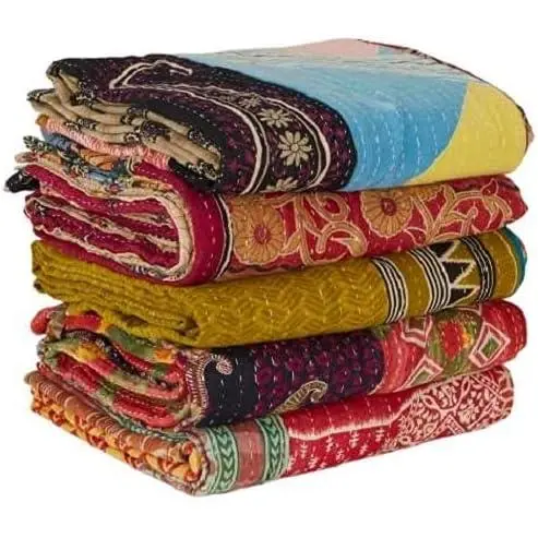 5 Pieces Mix Lot of Indian Kantha Cotton Bed Cover Throw Old Sari Made Patches Made Blanket