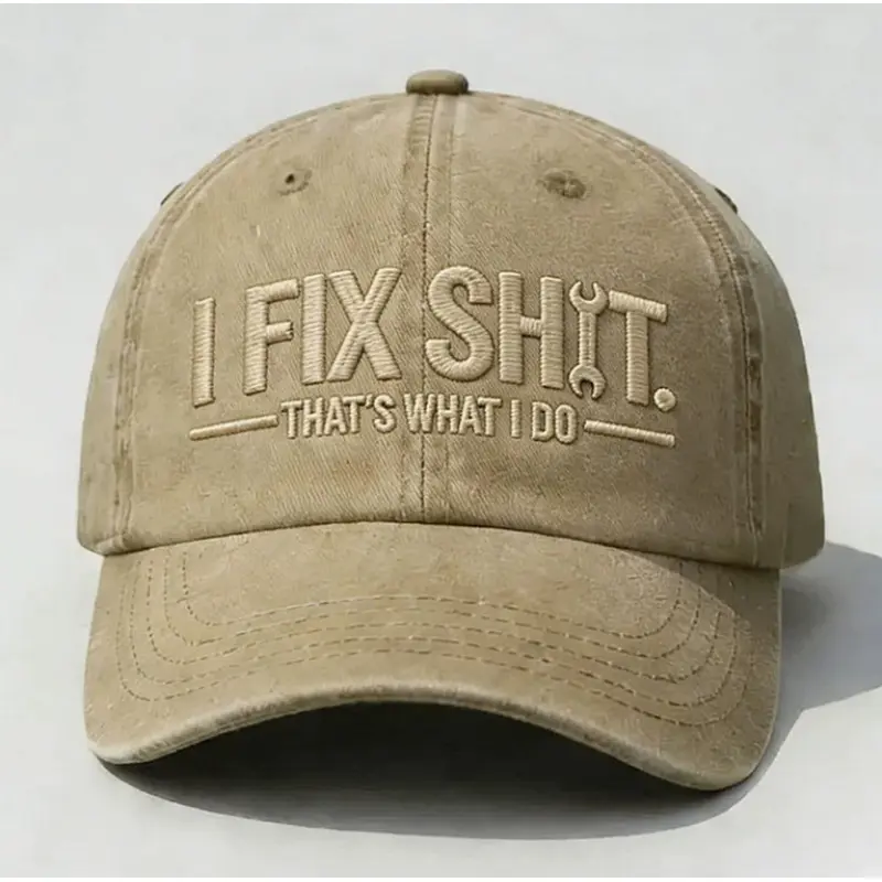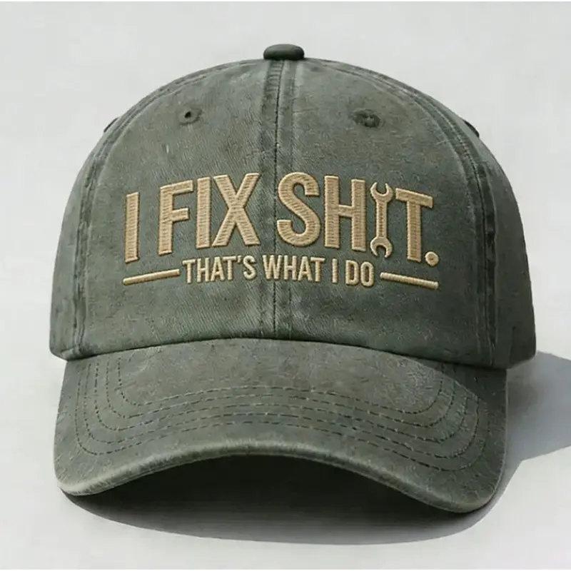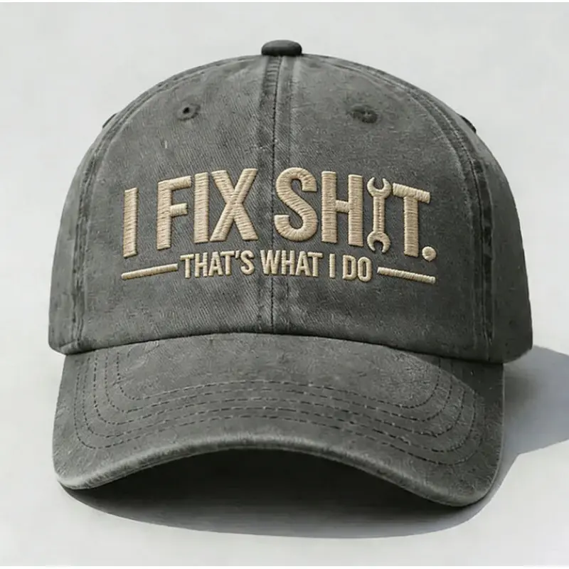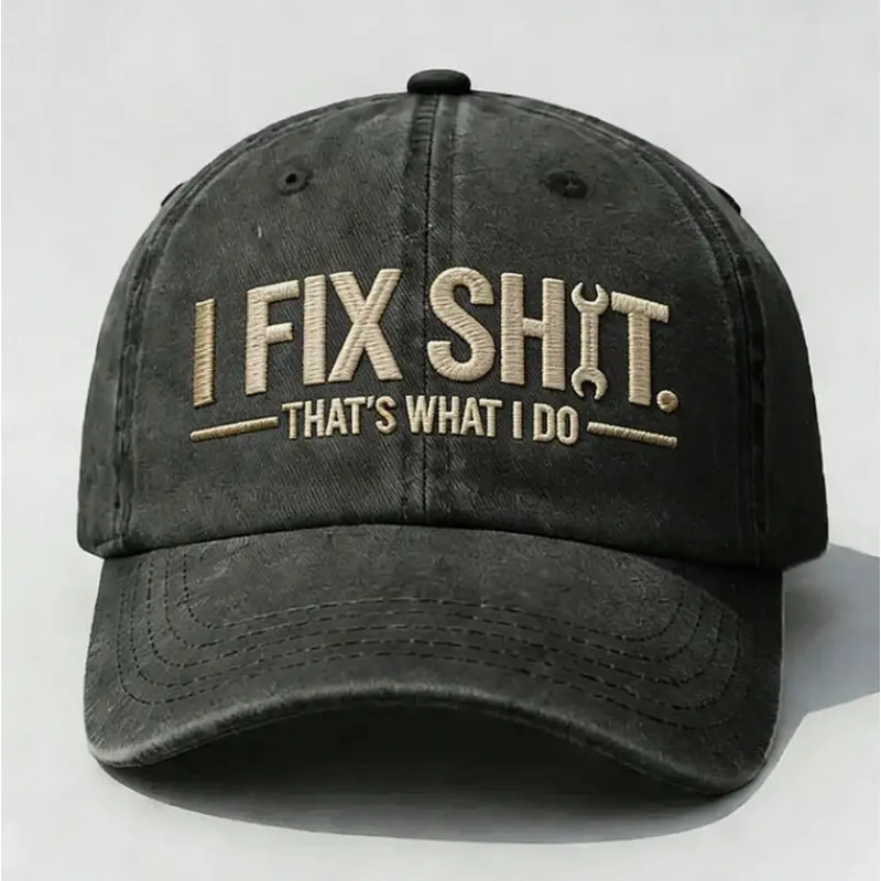 Washed cotton embroidered hat for men, I FIX SHIT embroidered hat, letter flat embroidery baseball cap