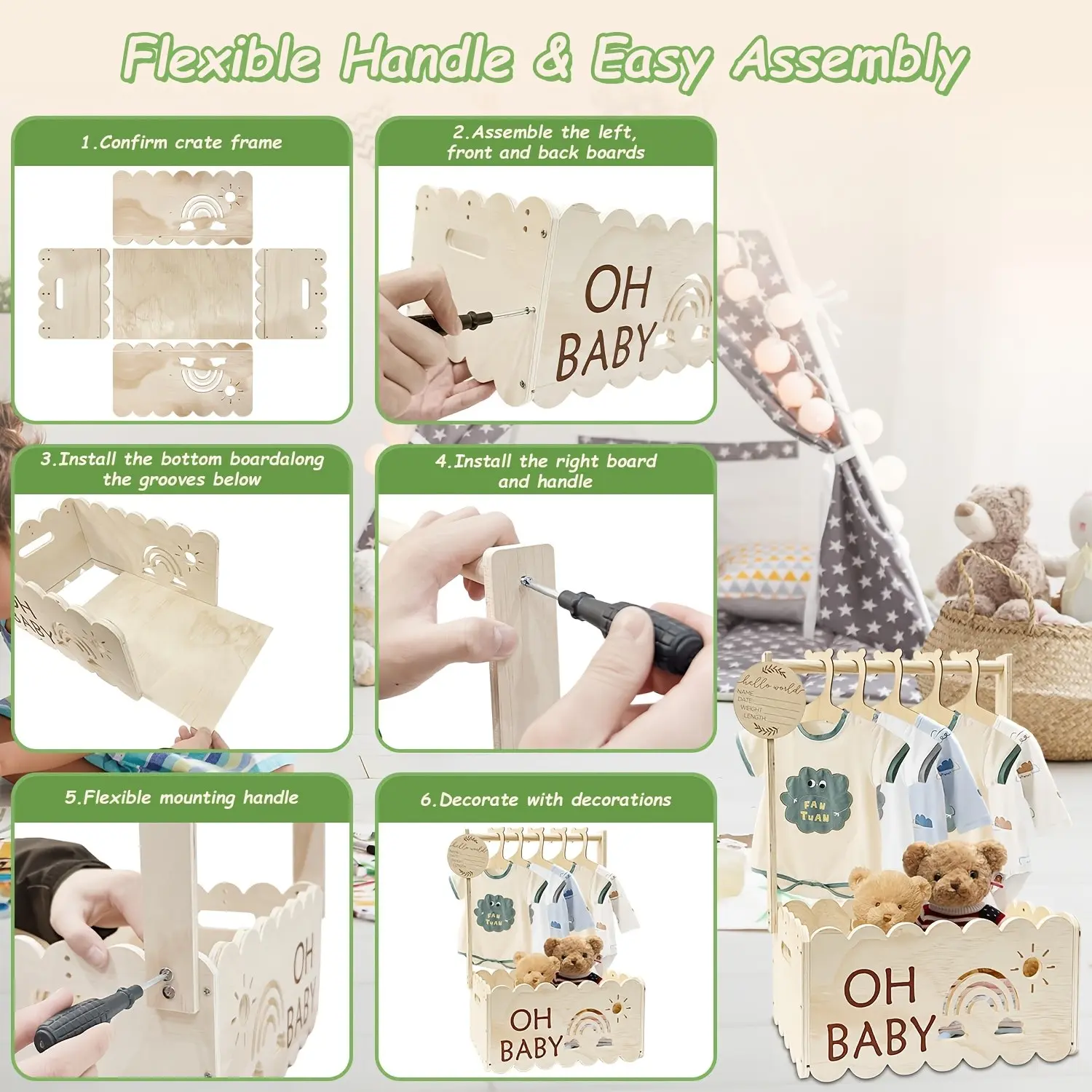 【Wooden Material】: Crafted from bamboo wood, ensuring durability and eco-friendliness for baby's belongings.