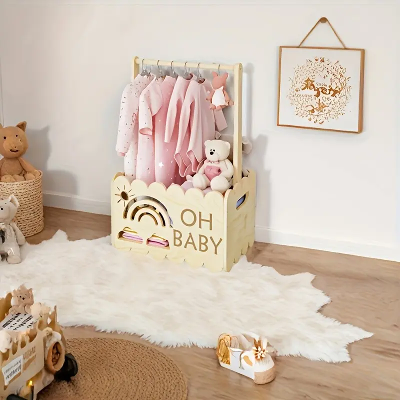 Baby Closet Organizer Rack, Wooden Baby Clothes Hanger, Rainbow Toy Storage Shelf, Infant Wardrobe Display Stand, Oh Baby Brand