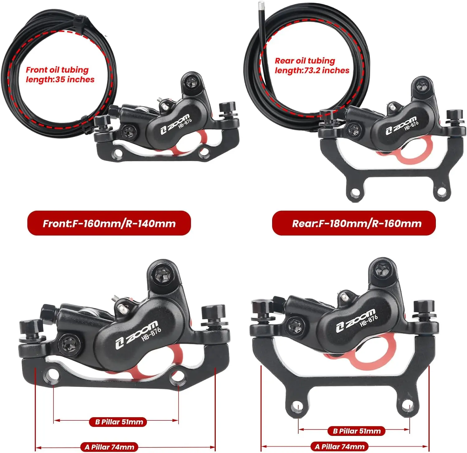 ·ZOOM HB-876E Electric bike hydraulic brake set adopts a left front and right rear braking method, which fits the habit of most American people.