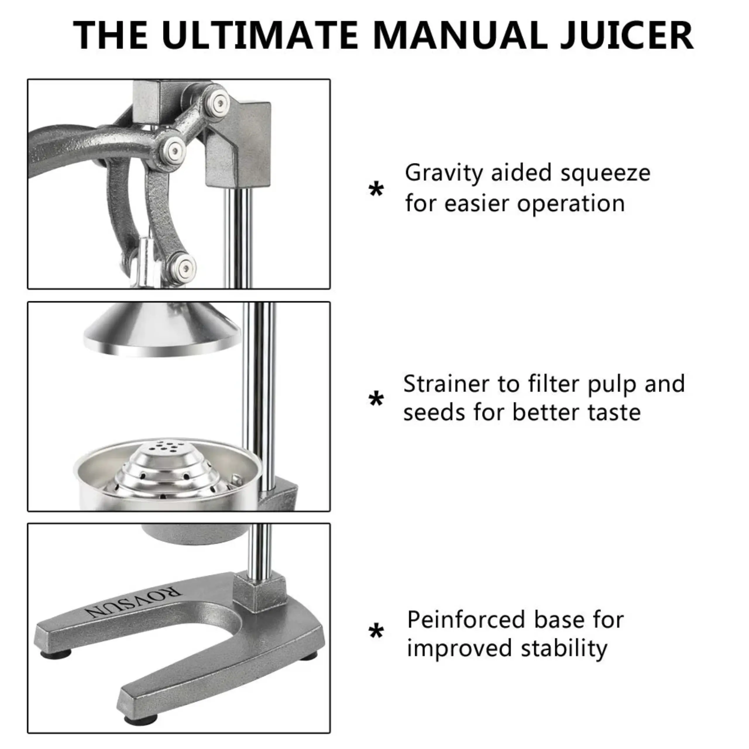 ROVSUN Manual Cast Iron Citrus Juicer Heavy Duty Grey