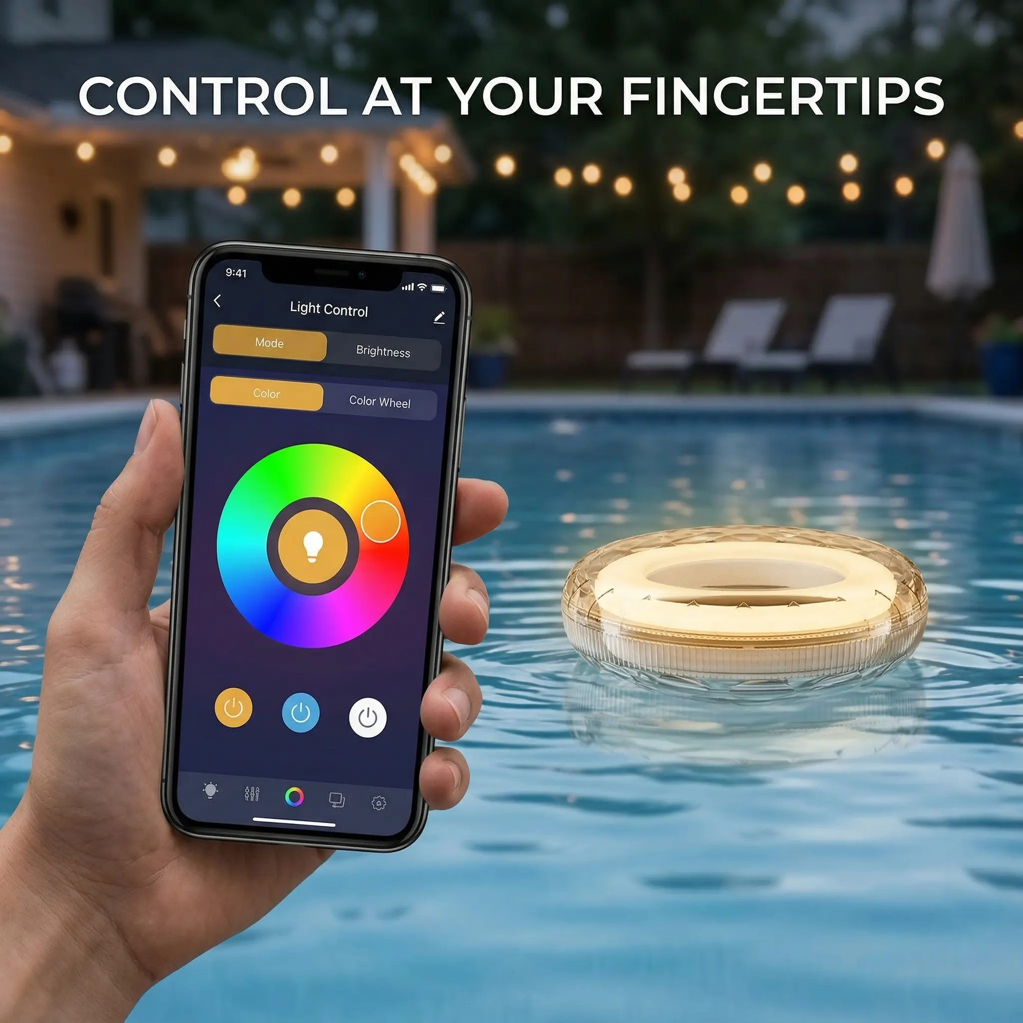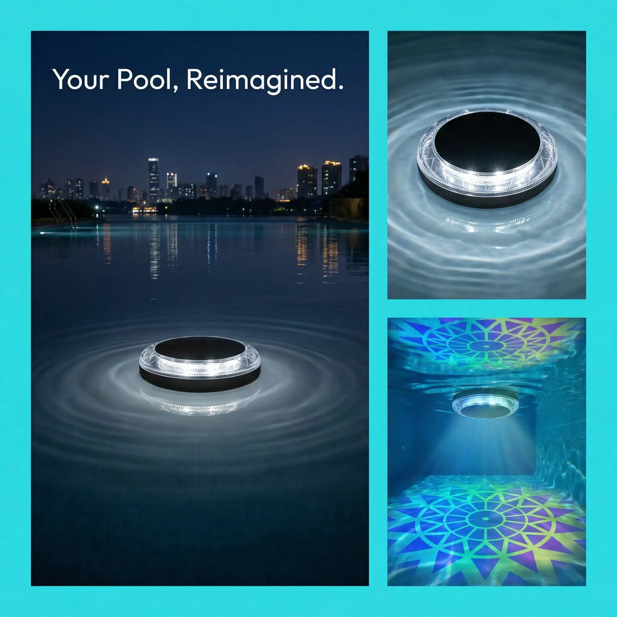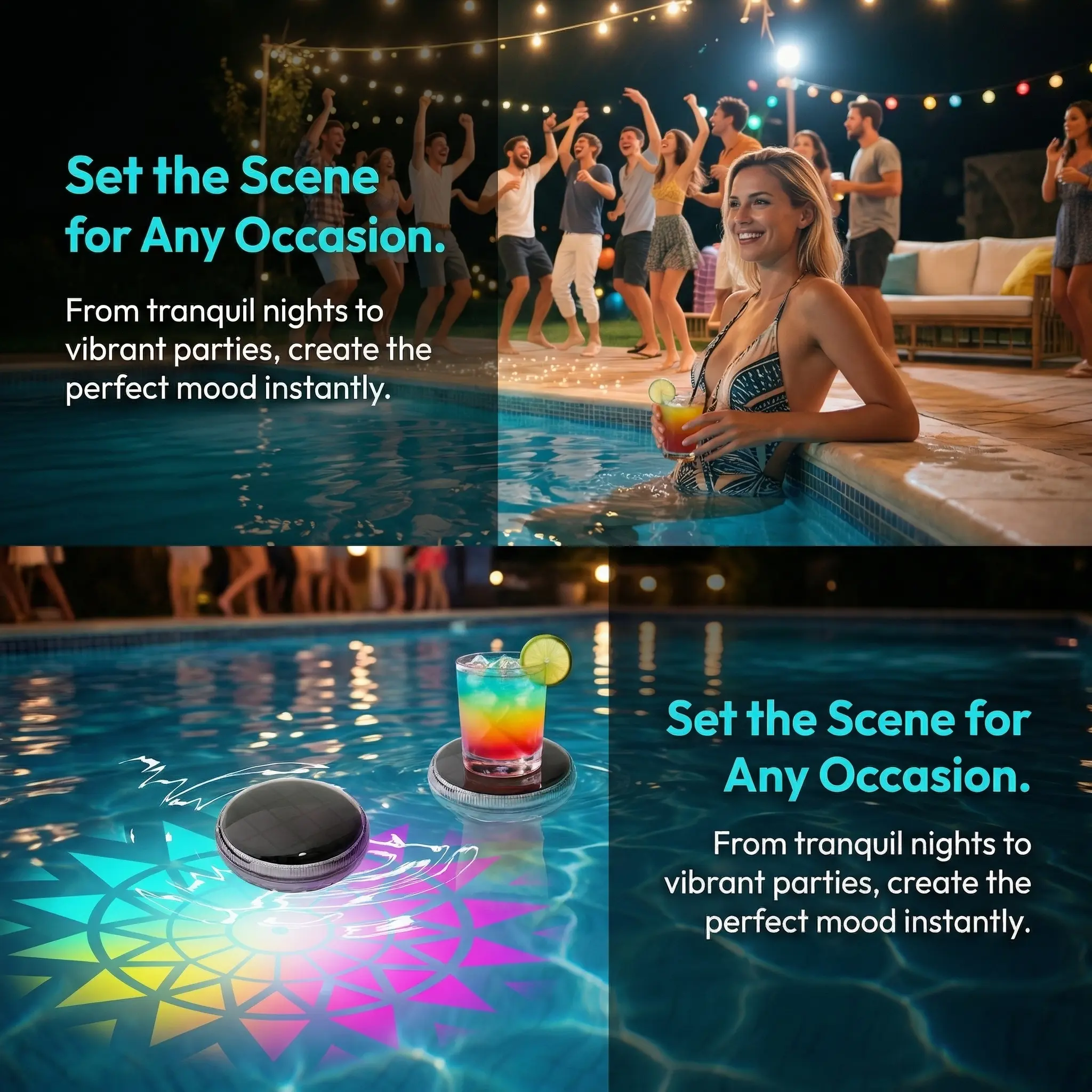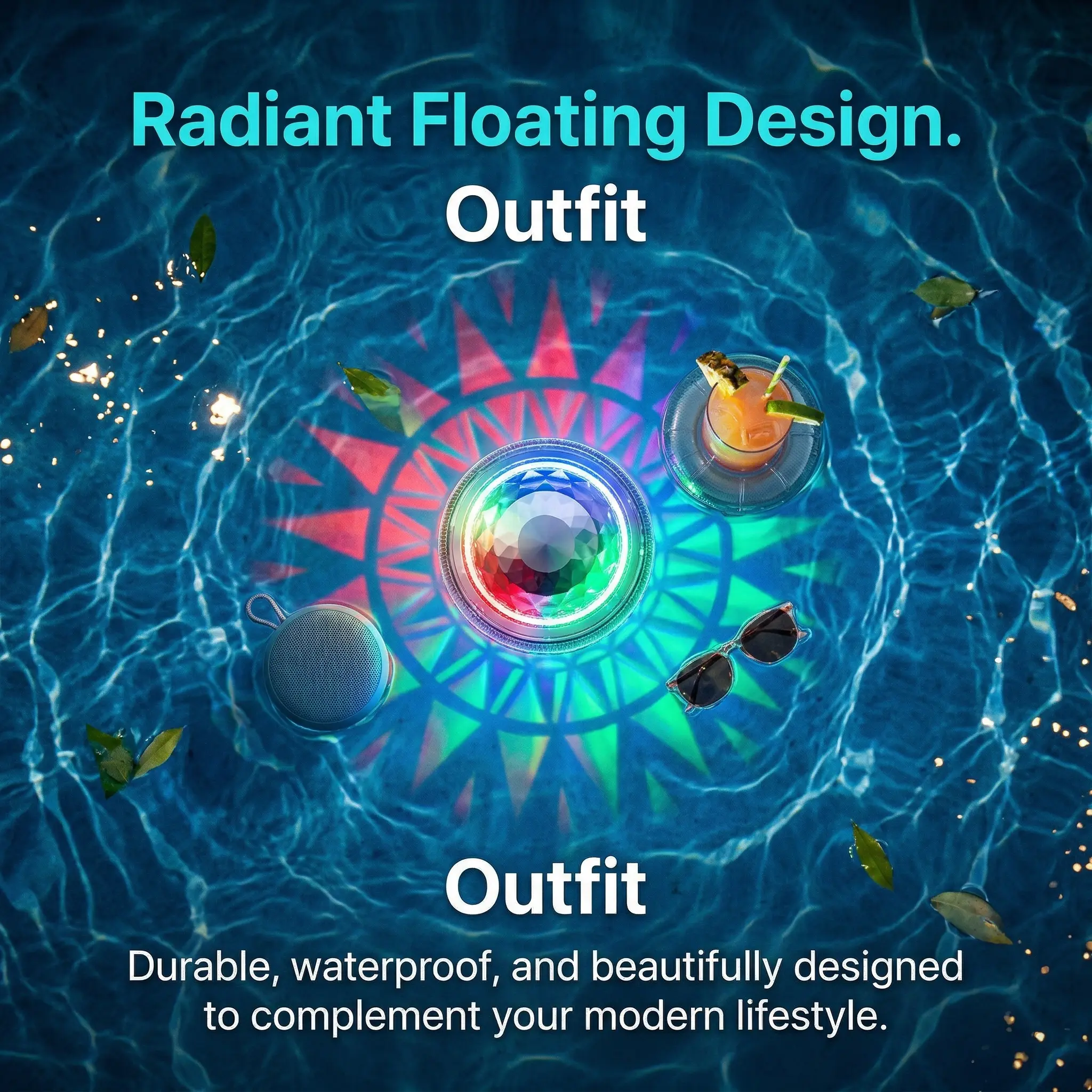 Bring a vibrant and relaxing atmosphere to your outdoor space with this solar floating pool light. Designed for decorative water lighting, it floats on the water surface and creates colorful illumination for swimming pools, hot tubs, ponds, garden parties, and backyard night décor. The RGB color-changing effect helps create the right mood for daily ambiance, holiday decoration, and poolside gatherings.
