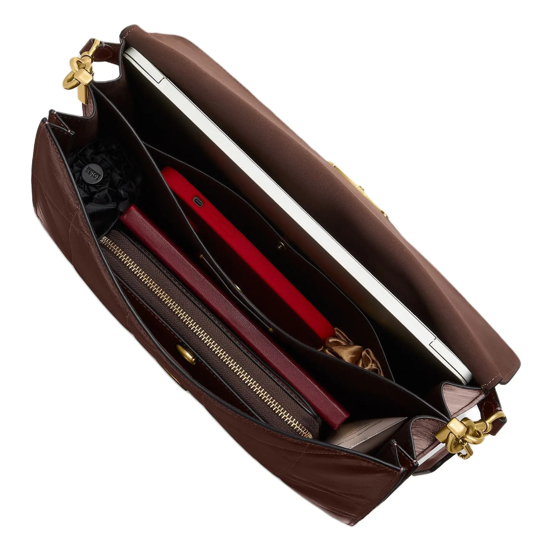 ·Signature gold-tone metal “C” turn-lock closure and engraved logo plaque