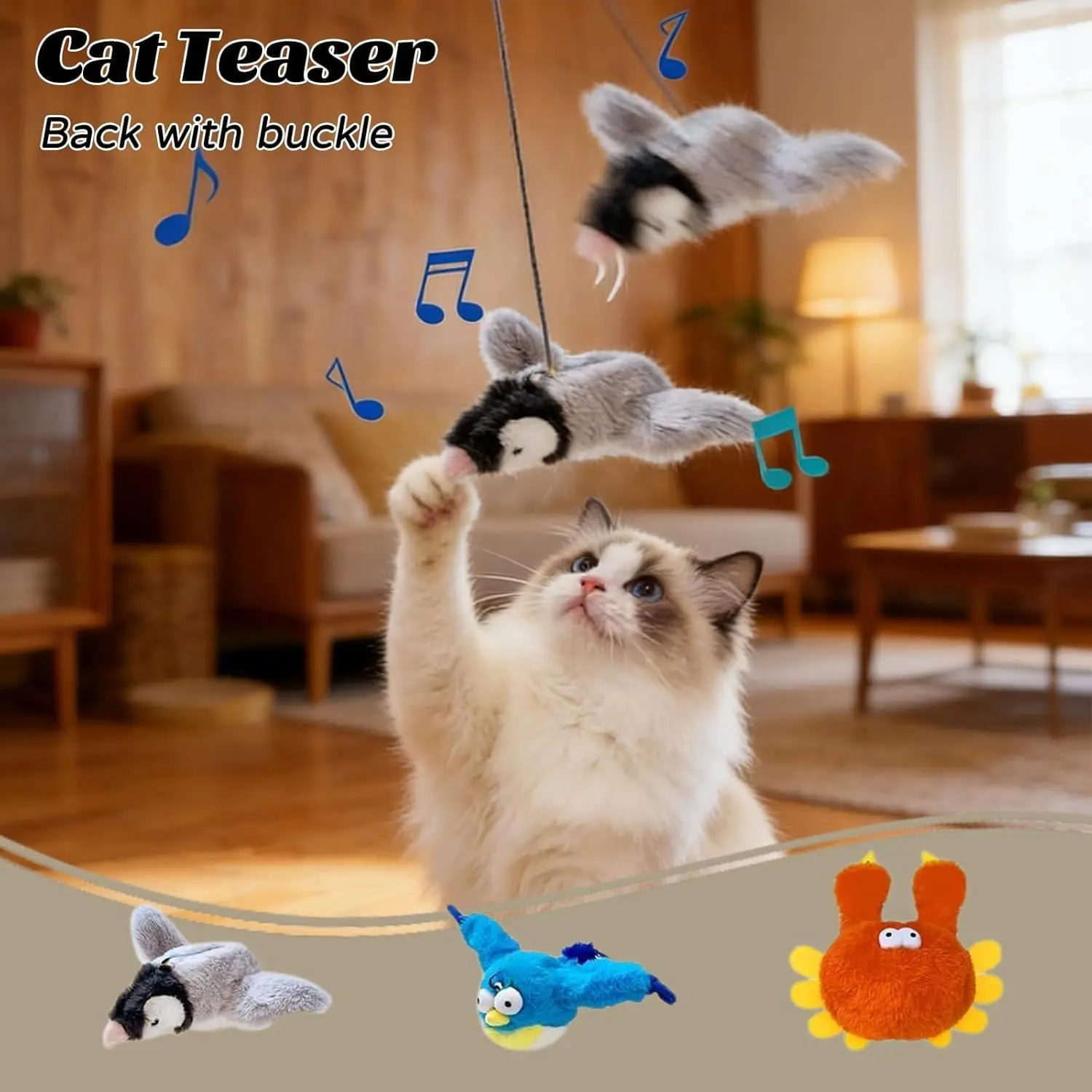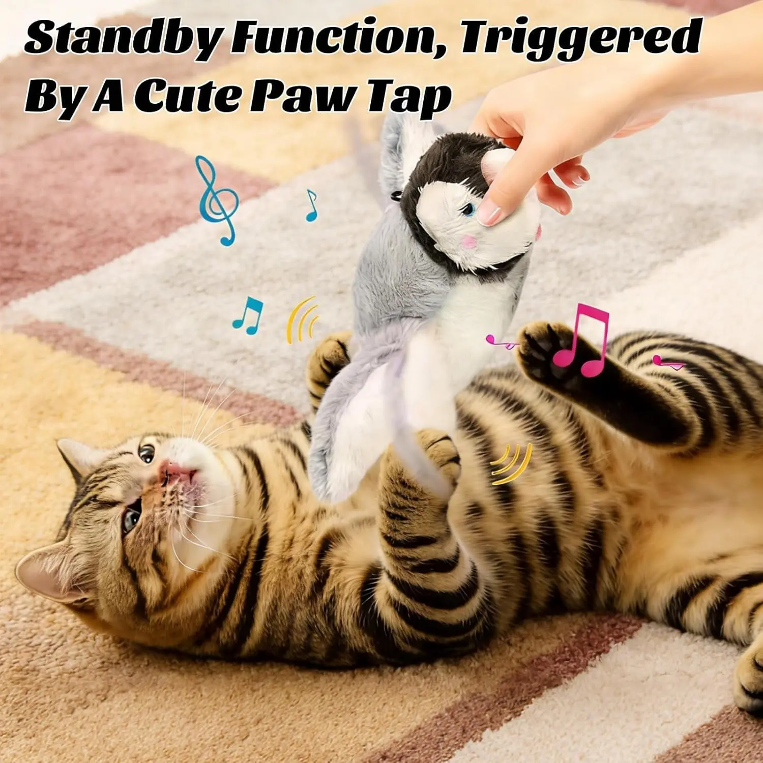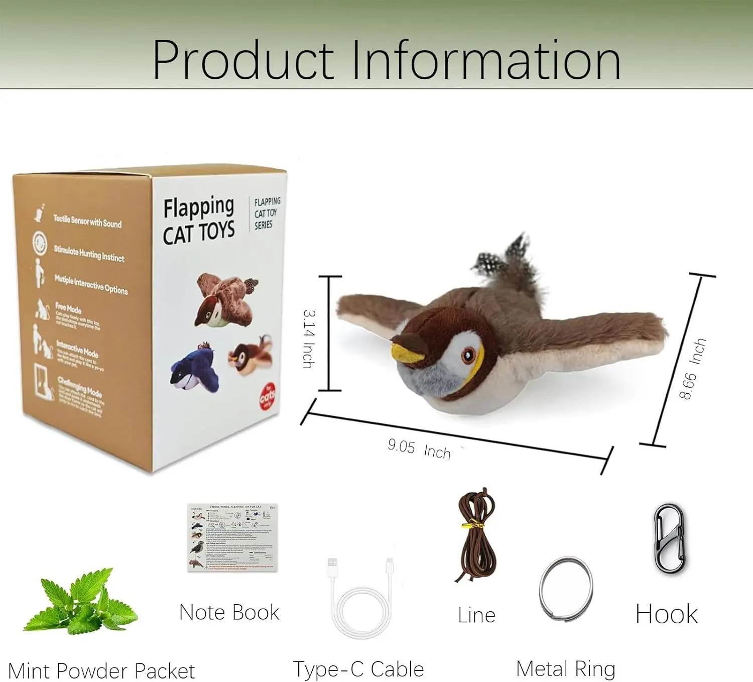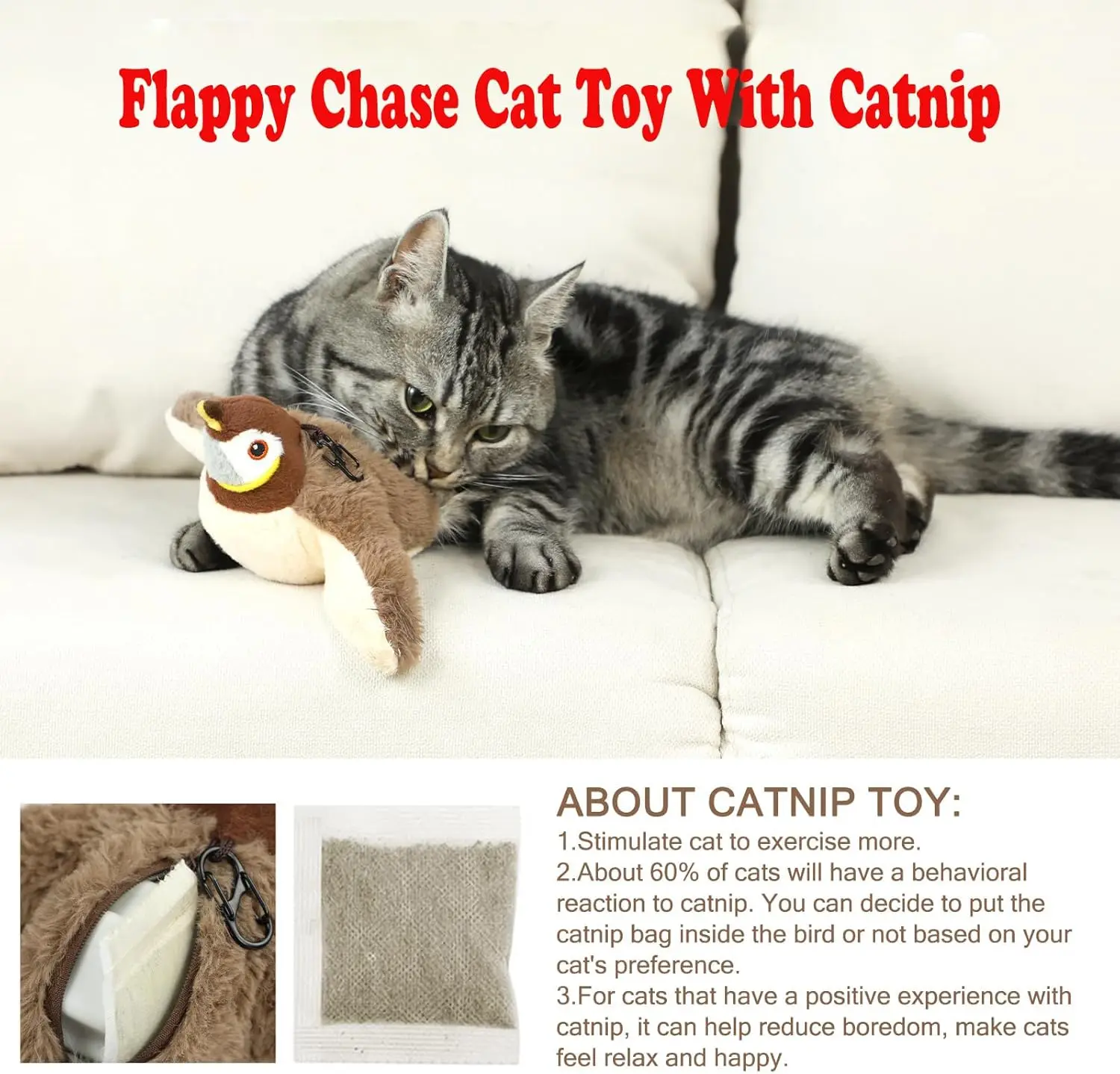 Upgraded Interactive Chirping Bird Cat Toy with Flapping Wings, New Flying Bird Cat Toy, Flight Simulation Electric Sparrow Shaking Hunting Pet Toy, Suitable for Indoor - Large (Brown)