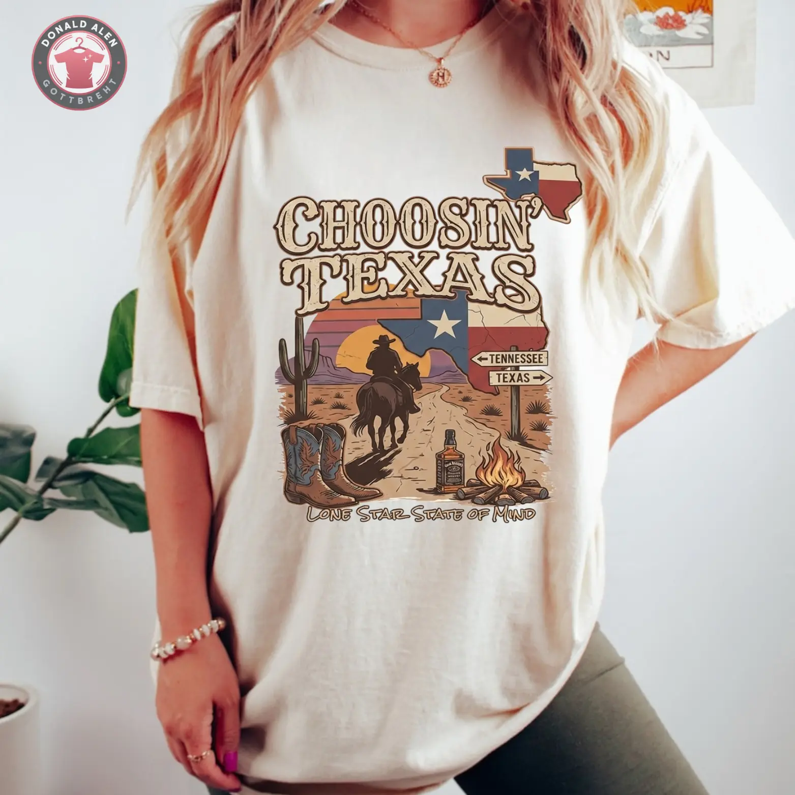Choosin' Texas Shirt, Vintage Western Graphic Tee, Retro Cowboy T-shirt, Western Boho Style Top, Streetwear Unisex, Gift for Women & Men