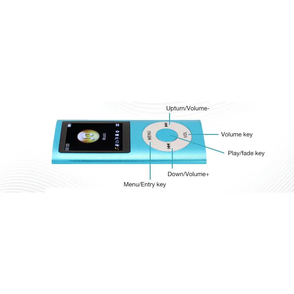 1. The product itself can not play music, you need to insert the storage card before use to be recognized by the computer, download the file to the memory card can be; 2. The Bluetooth ico that comes with the product recognizes the Bluetooth headset and Bluetooth speaker function, and cannot be connected to phone devices; 3. The product return button is not to press the 'MENU' key, you need to short press the 'VOL' key; short press the 'MENU' key in the playback state, it is the menu option function; 4. Volume adjustment, product volume adjustment is required to long press the VOL button, the product screen will appear on the right side of the volume interface, press the left and right arrow buttons on the menu to adjust the sound size.