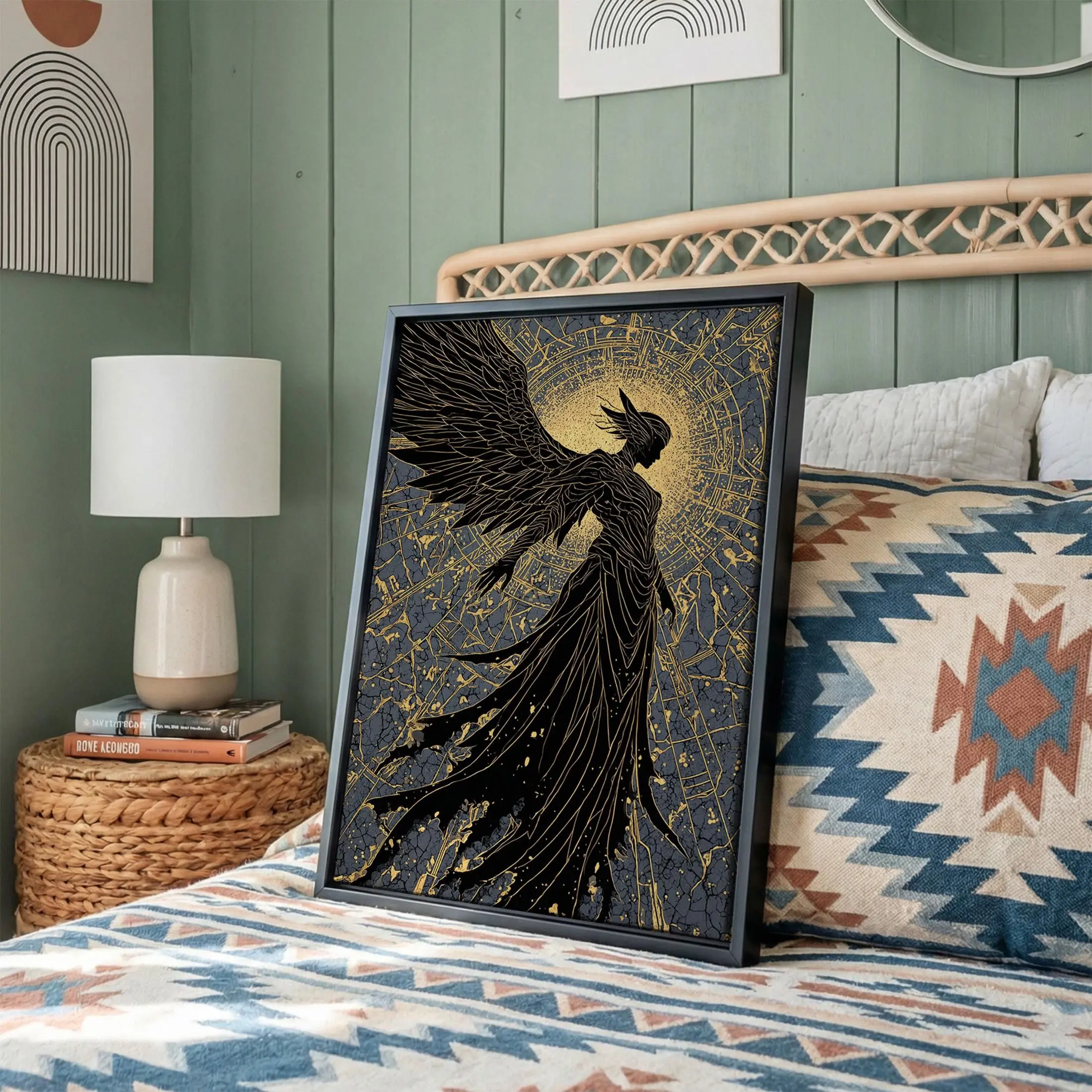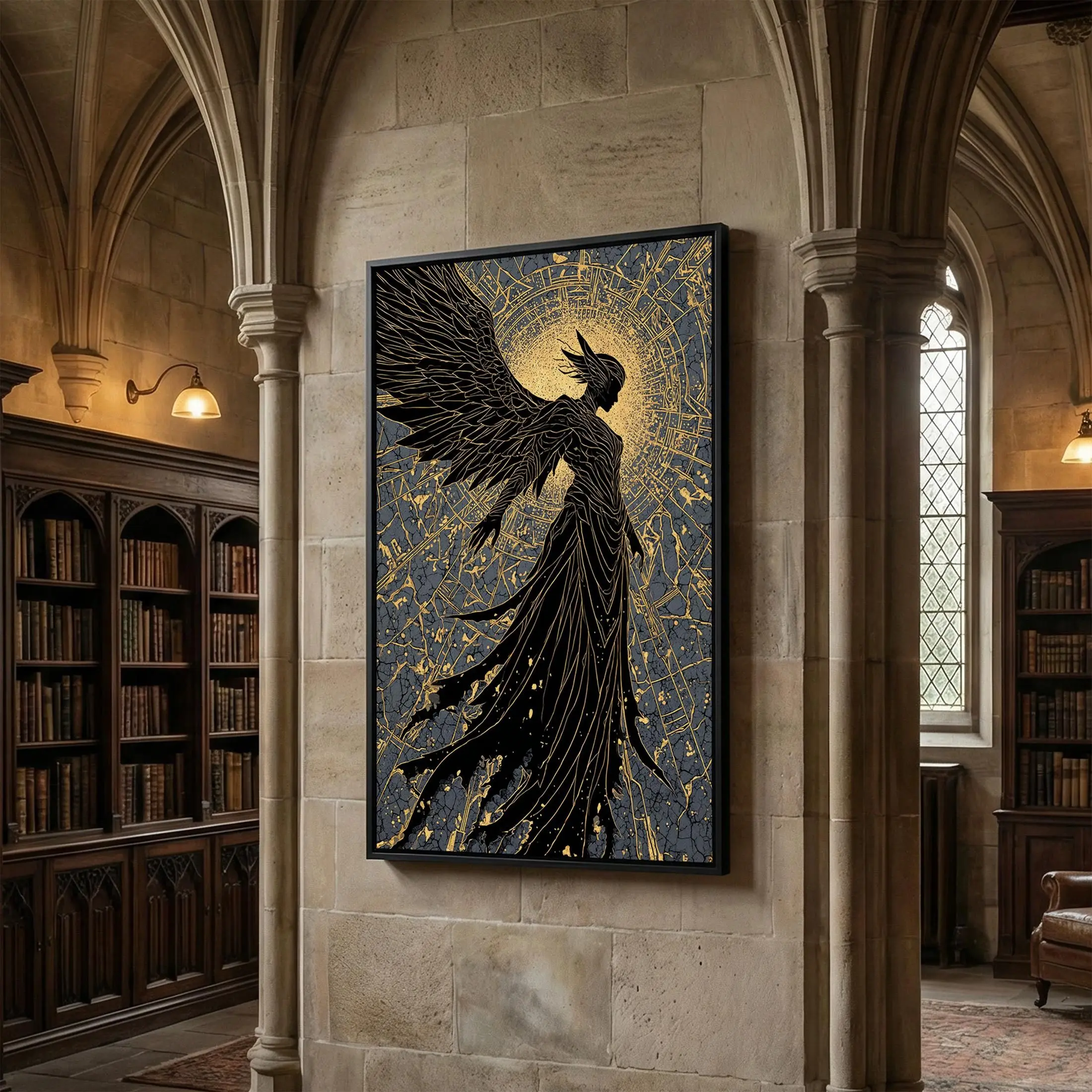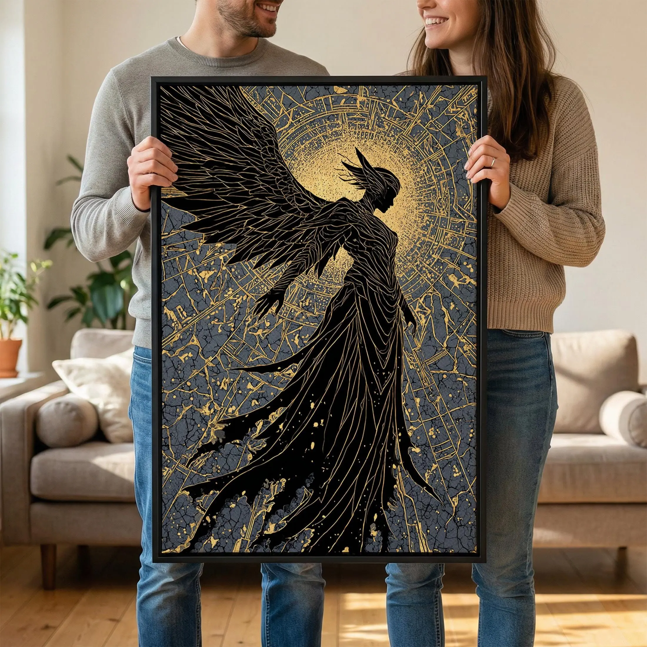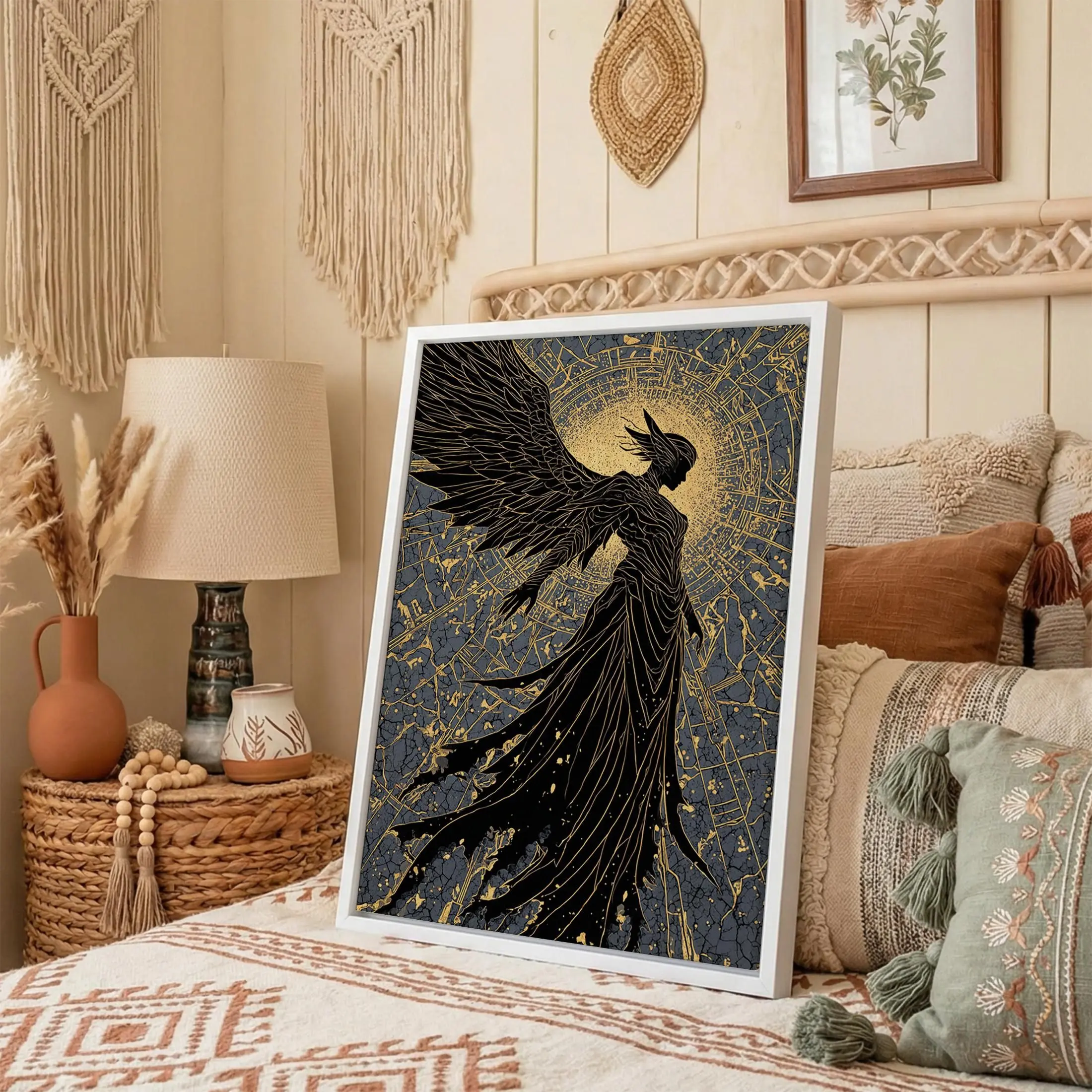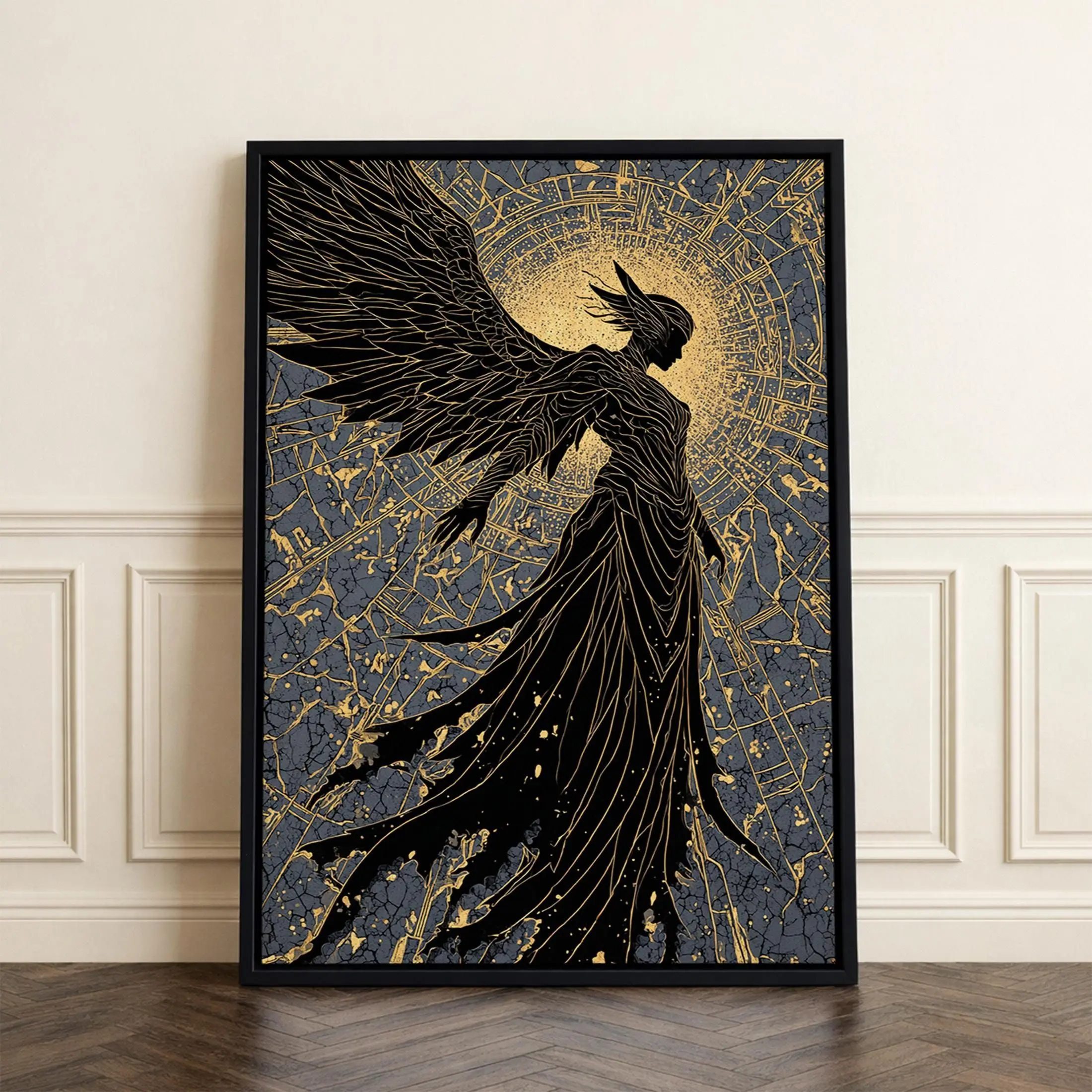 [Sale off up to 40%] [Frame Canvas] Radiant Angel Gold Canvas Art, Celestial Winged Guardian Canvas Print, Real Wood Frame Wall Decor, Mythology Fantasy Artwork