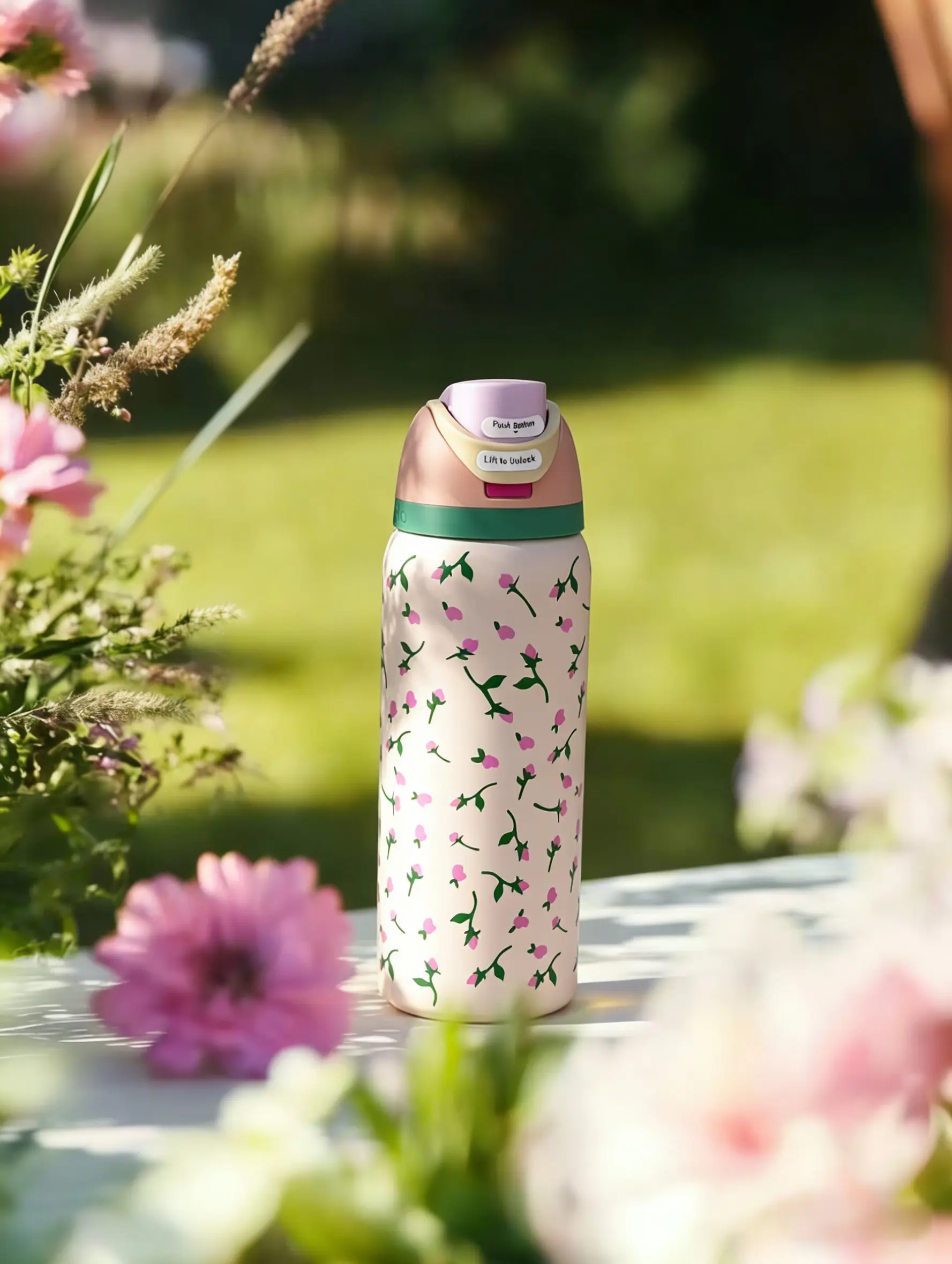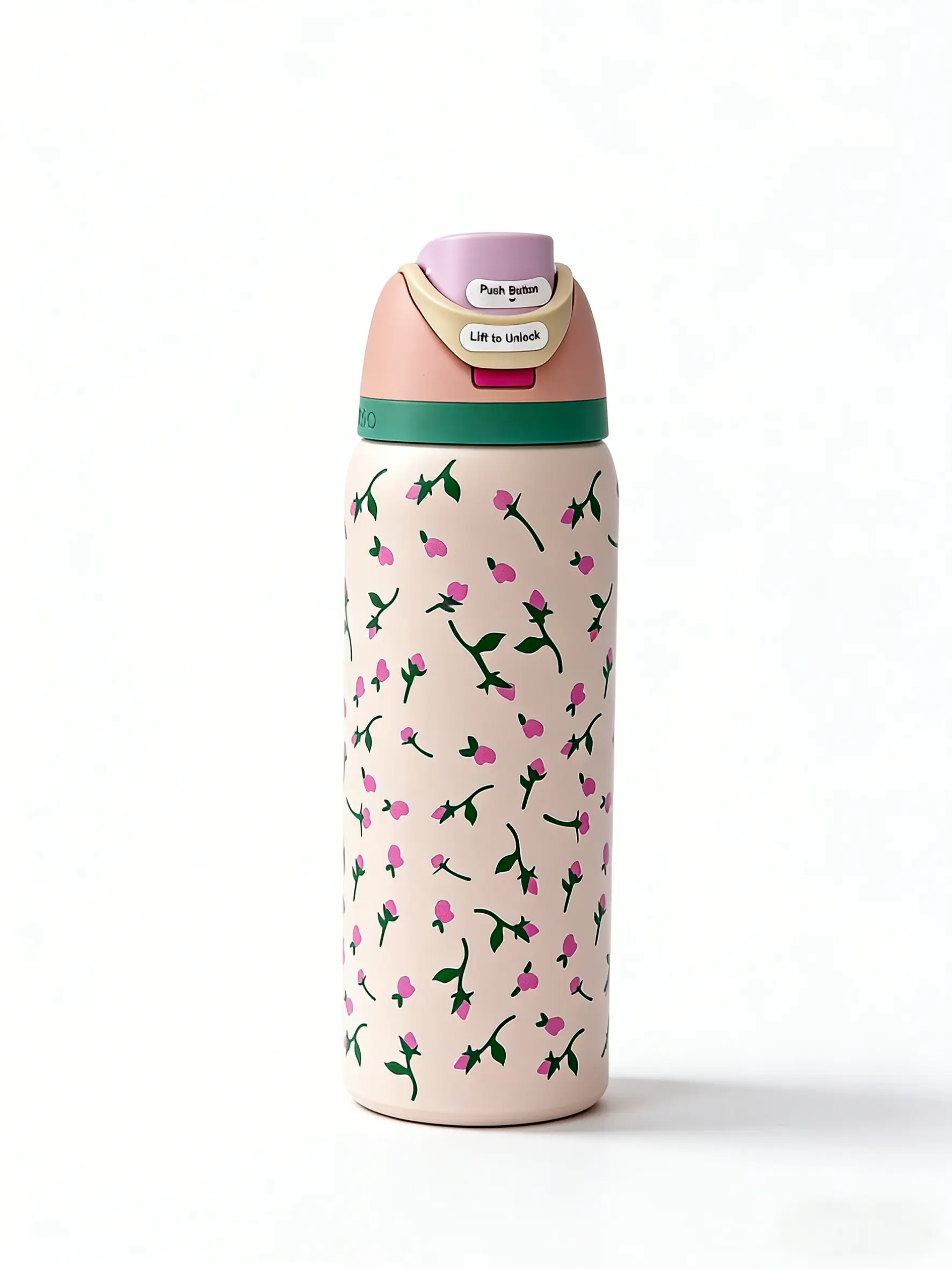 ·Cute Pink Rose Bud Print: The bottle boasts a charming pink rose bud print, adding a touch of elegance to your drinkware. It's a reusable flask that doubles as a portable tumbler mug. The design is both functional and aesthetically pleasing.