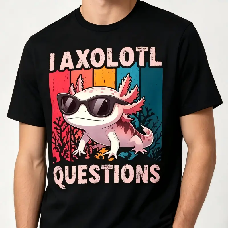 I Axolotl Questions Retro Graphic T-Shirt for Boys & Girls – Fun Casual Short Sleeve Tee with Bold Colorful Design, Round Neck, Soft Stretch Fabric, Perfect for Summer Men's Crew Neck Short Sleeve T-Shirts Cotton Printed Round Neck T-Shirt